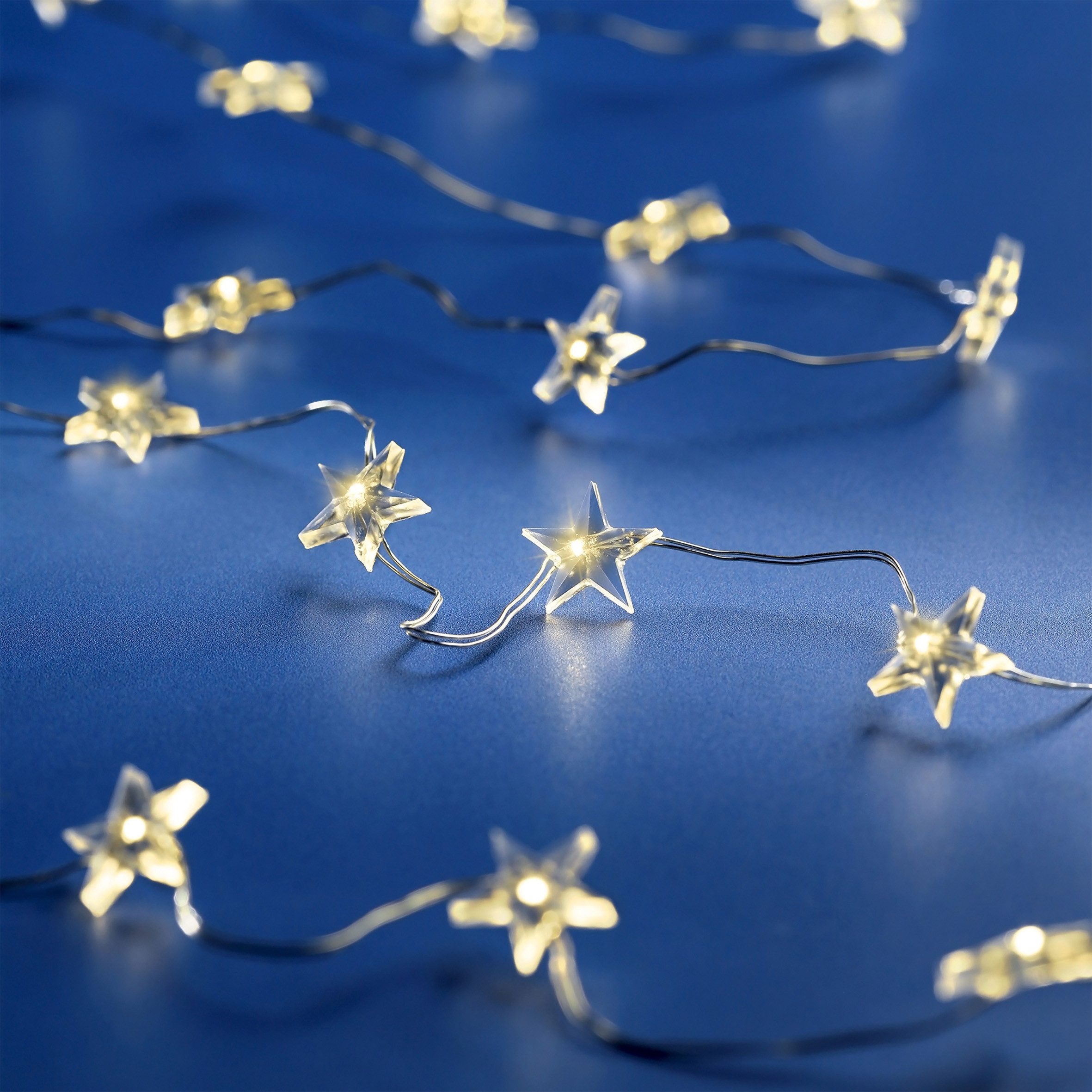 Drahtlichterkette mit Sternen und 60 warm weißen LED für Innen mit Timer