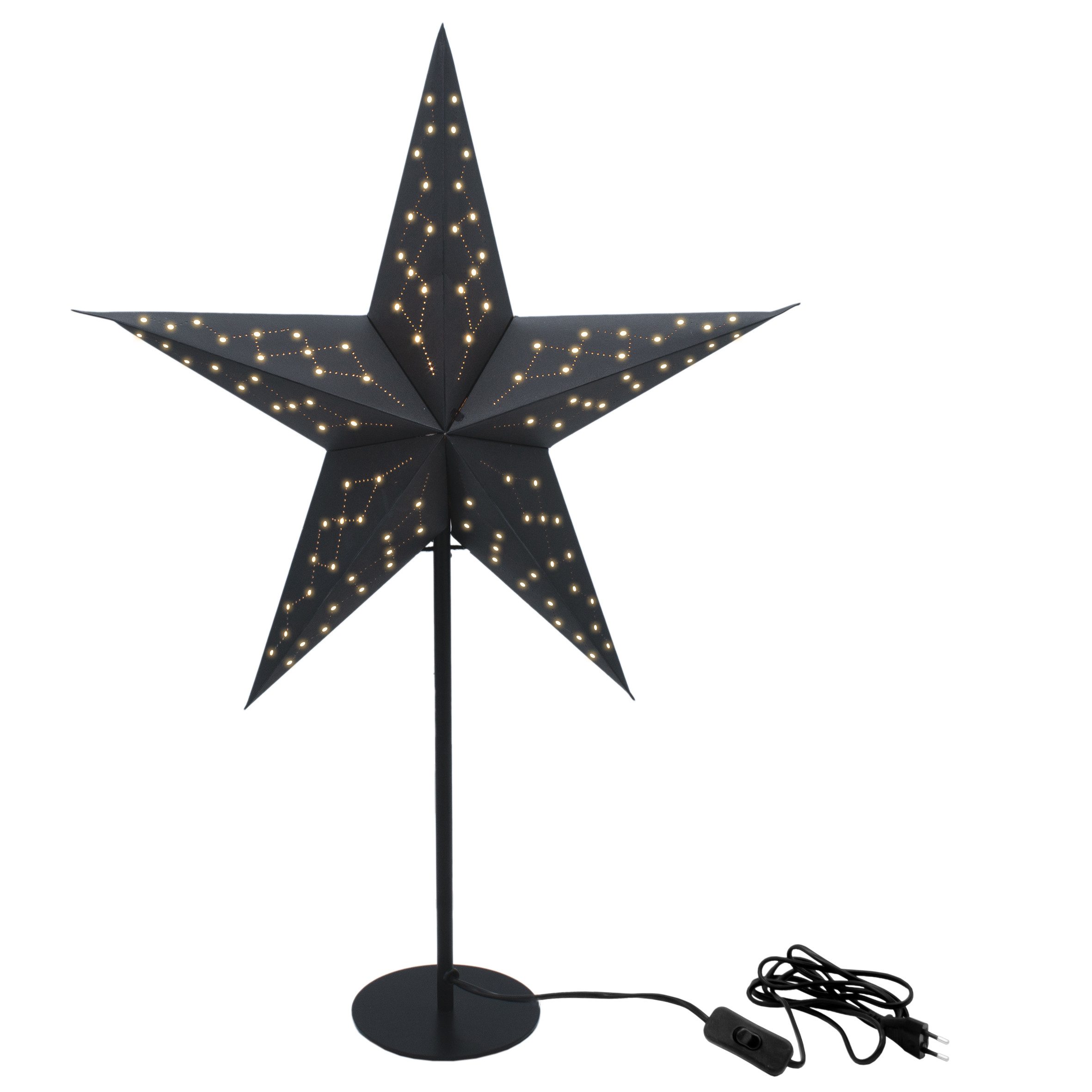 Tischlampe mit Stern Lampenschirm aus Papier in schwarz ca. 45 cm Durchmesser mit Standfuß aus Metall