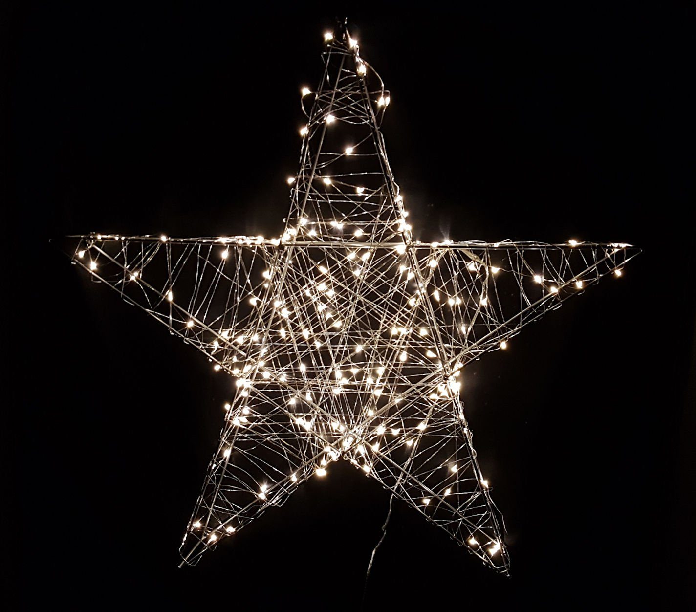 LED Metall Stern silber mit Timer - 80 LED / 38 cm - Weihnachts Fenster Deko für Außen
