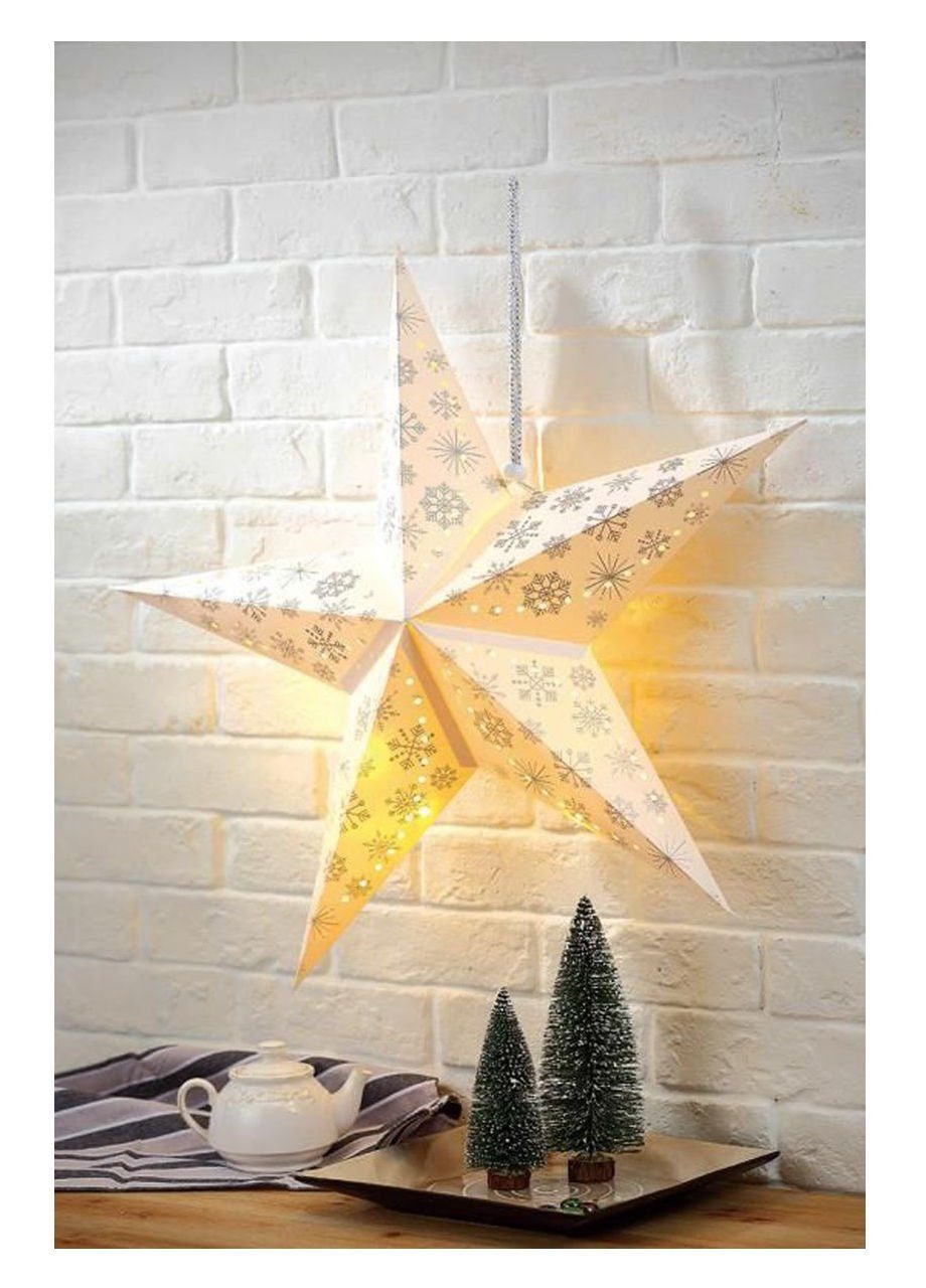 Papierstern 60 cm - 10 LED - zum hängen in weiß