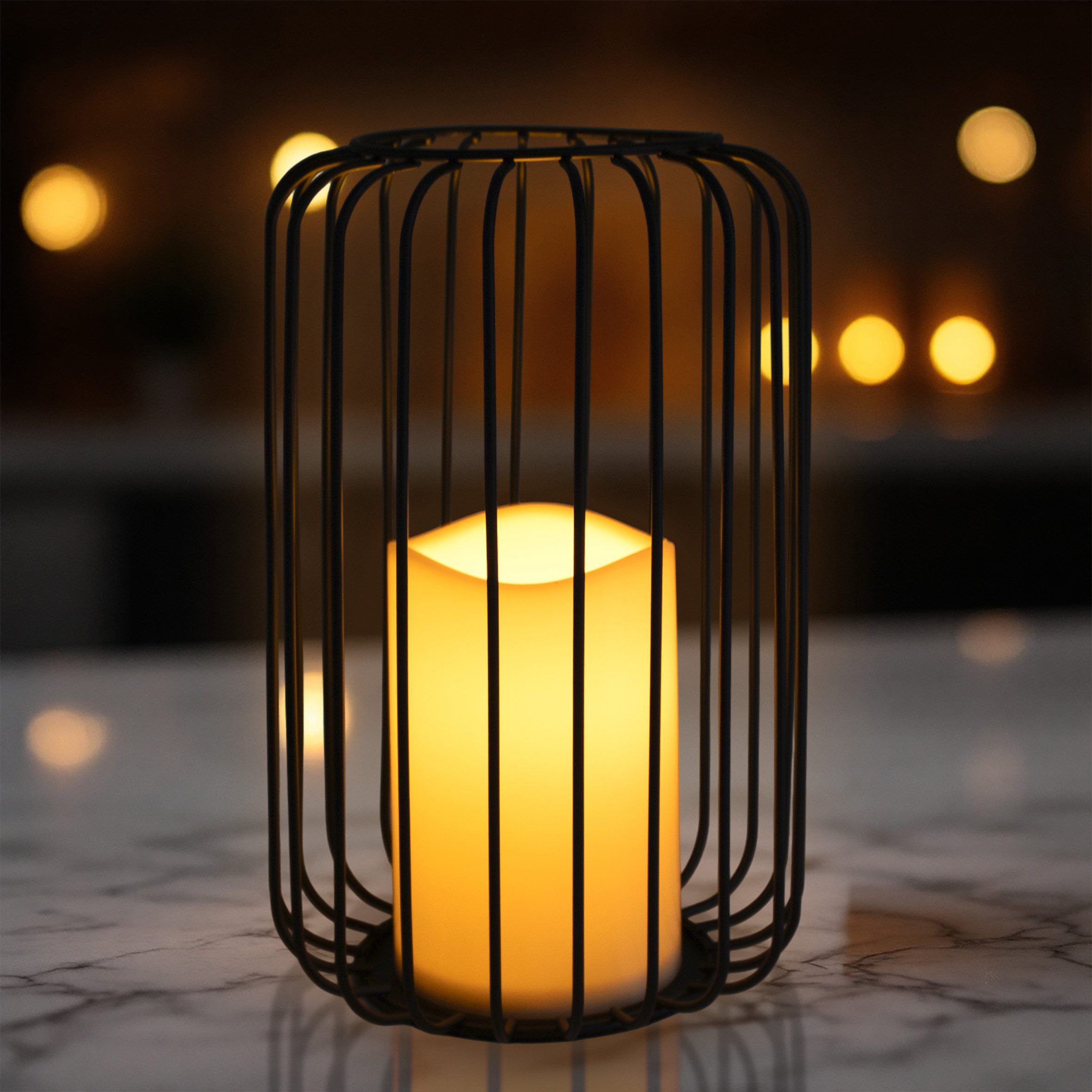 Lieferumfang | 1x Metall Gitter Windlicht schwarz mit LED Kerze - 22 x 14 cm |