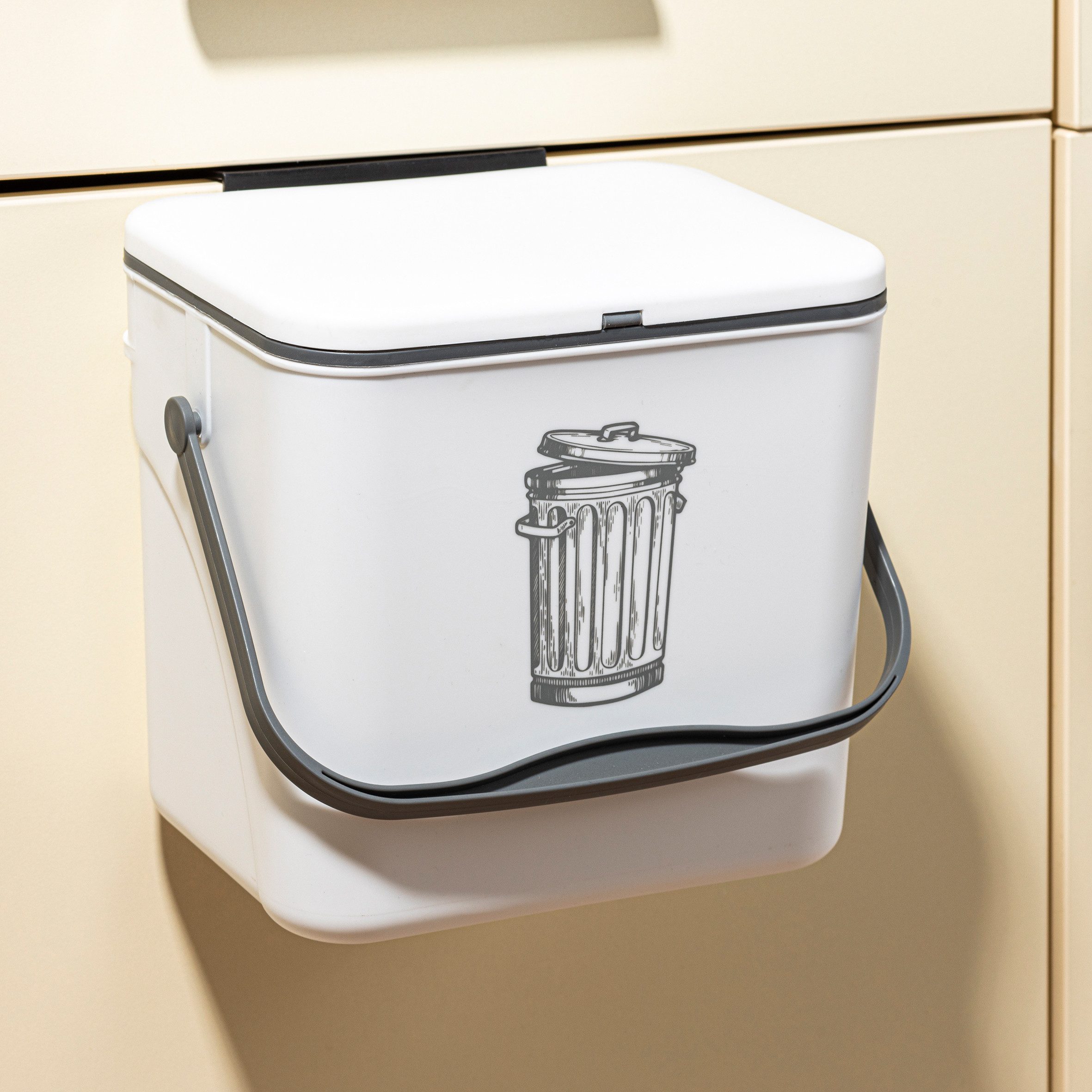 Kleiner Mülleimer aus Kunststoff in weiß mit ca. 6 Liter Fassungsvermögen zum Einhängen an Schranktüren