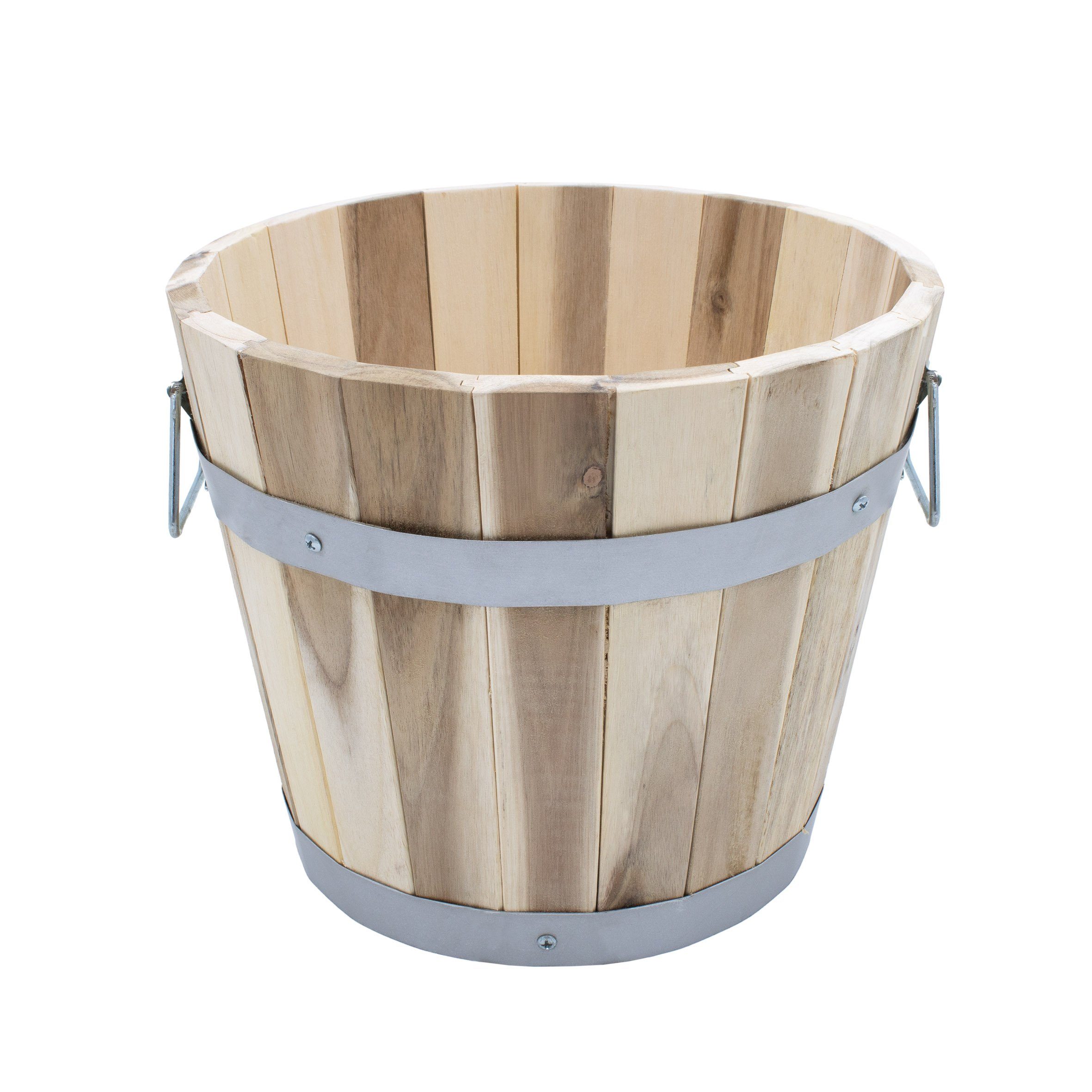 Holz Pflanzeimer mit Griffen - 28 x 23 cm - Garten Deko Blumentopf