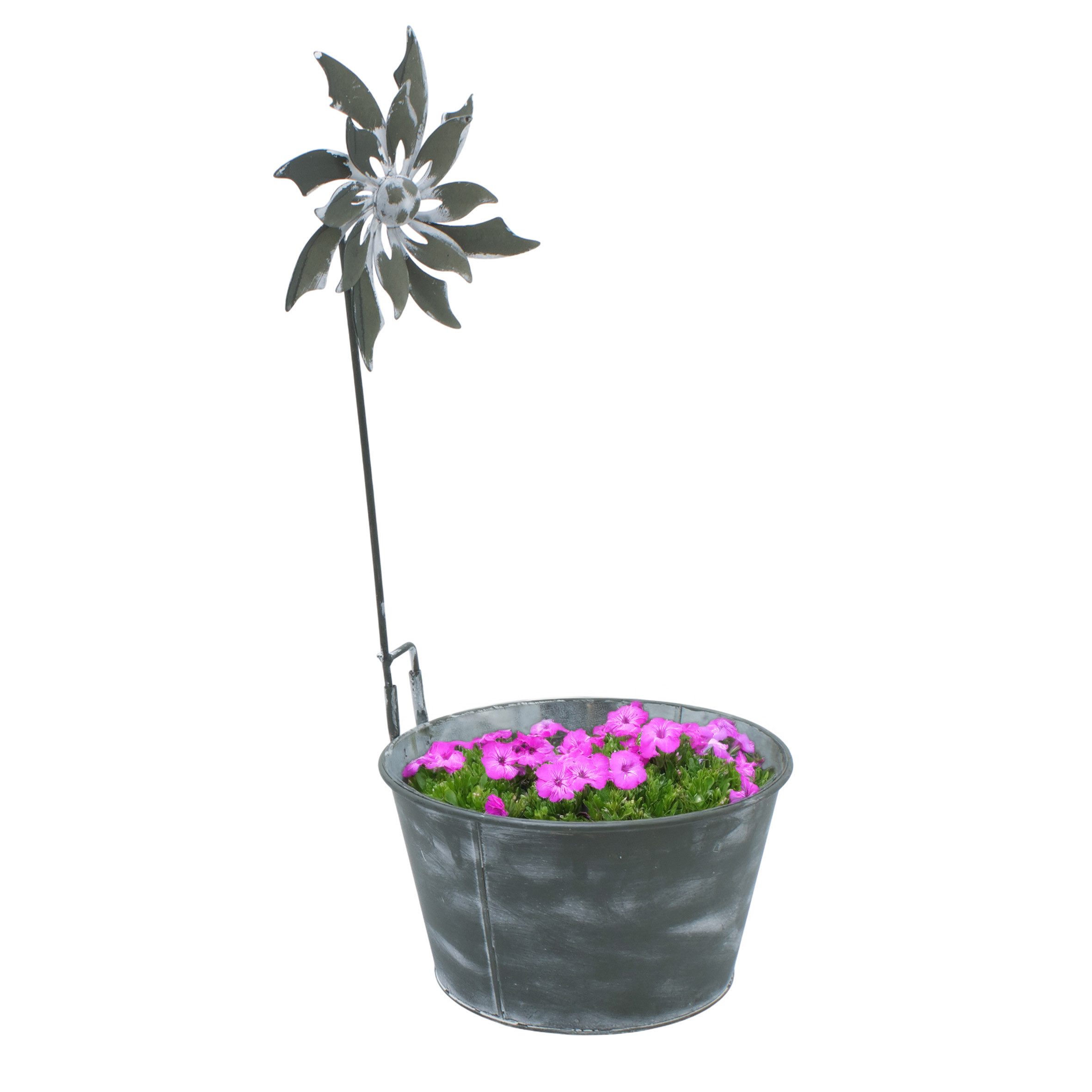 Metall Eimer verzinkt mit Deko Windmühle - 55 x 25 cm - Pflanzschale shabby grau mit Windrad