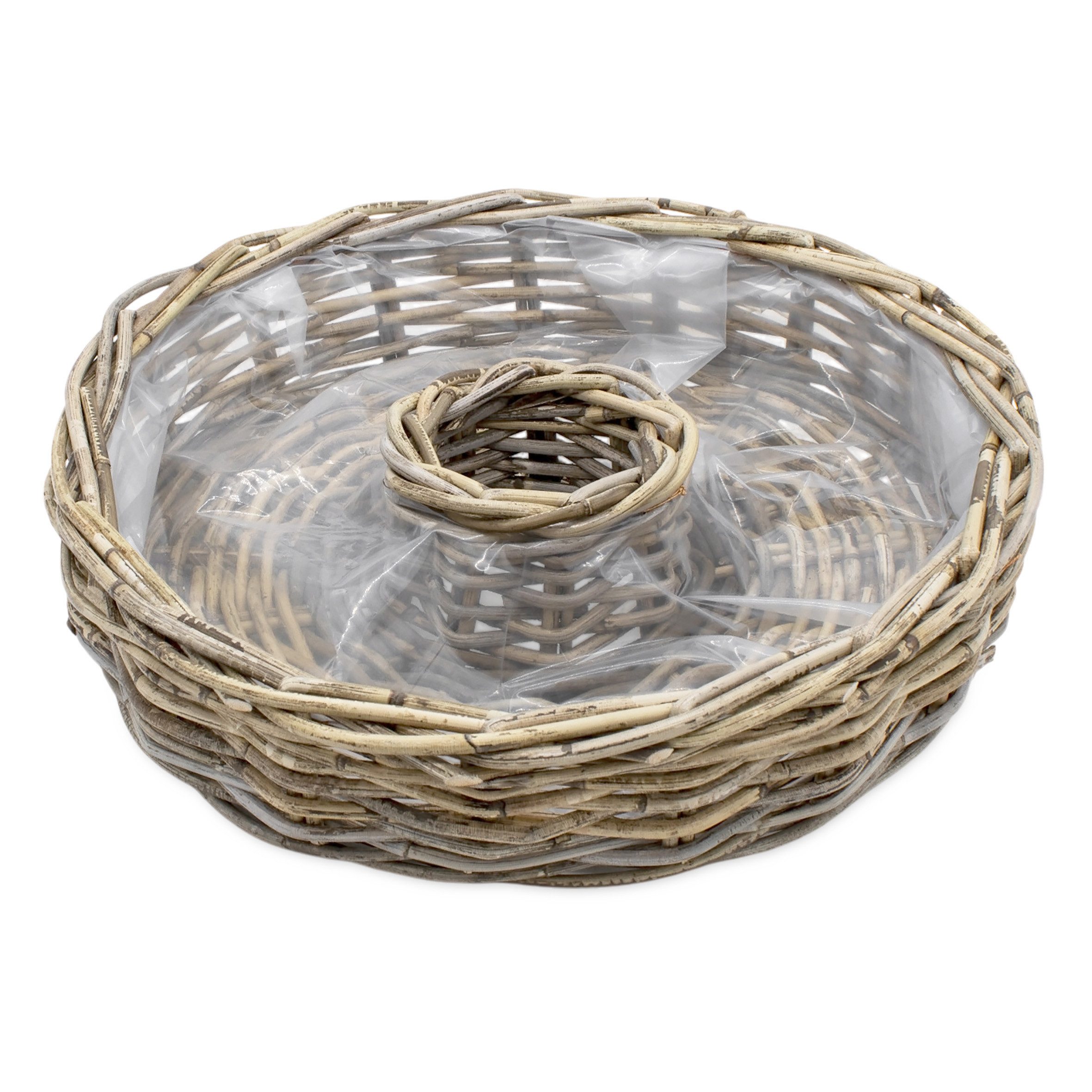 Pflanzschale aus natürlichem Rattan ca. 40 cm Durchmesser direkt bepflanzbar dank eingearbeiteter Folie