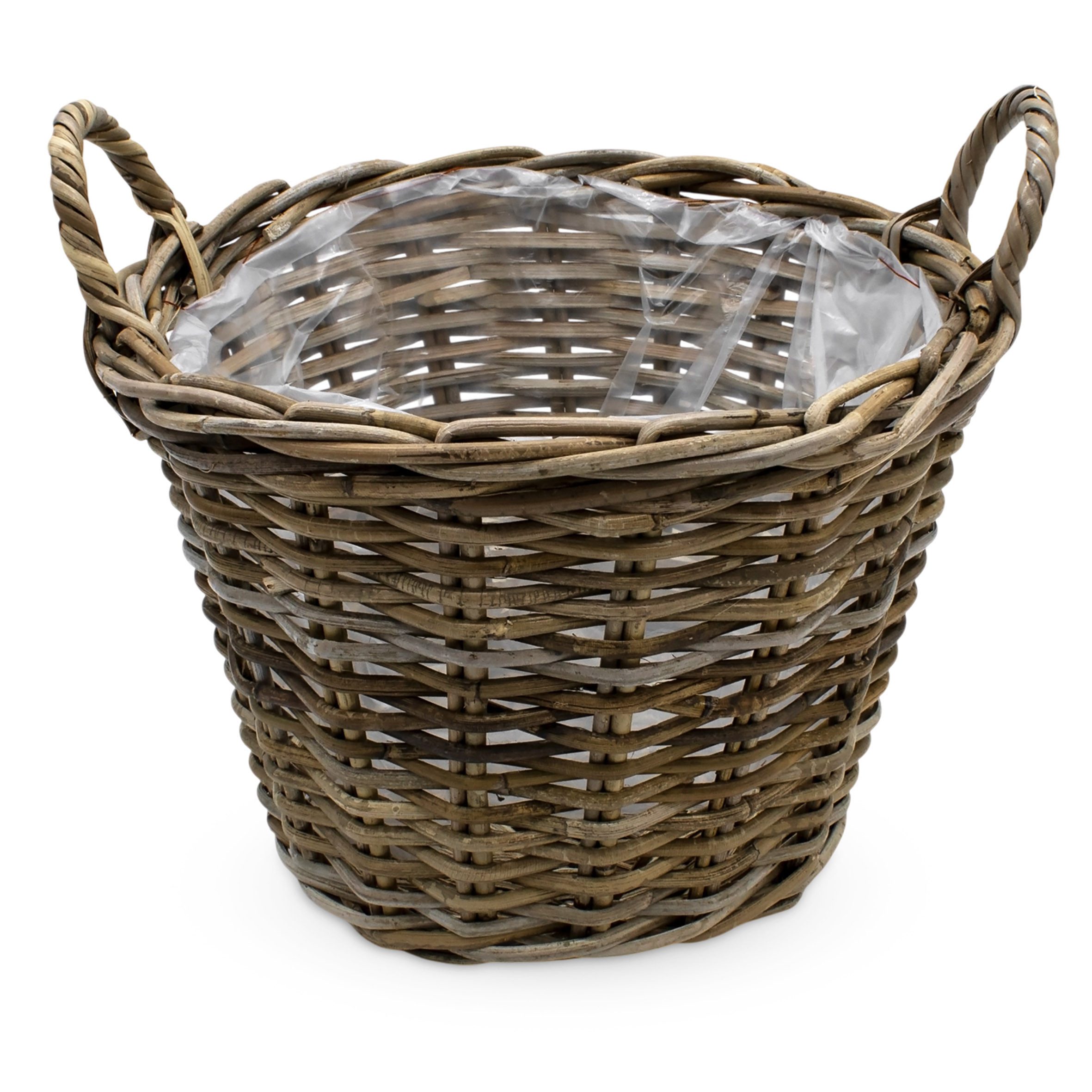 Rattan Pflanzkorb natur mit Folie - 35 cm - Weide Blumenkorb rund mit Henkeln