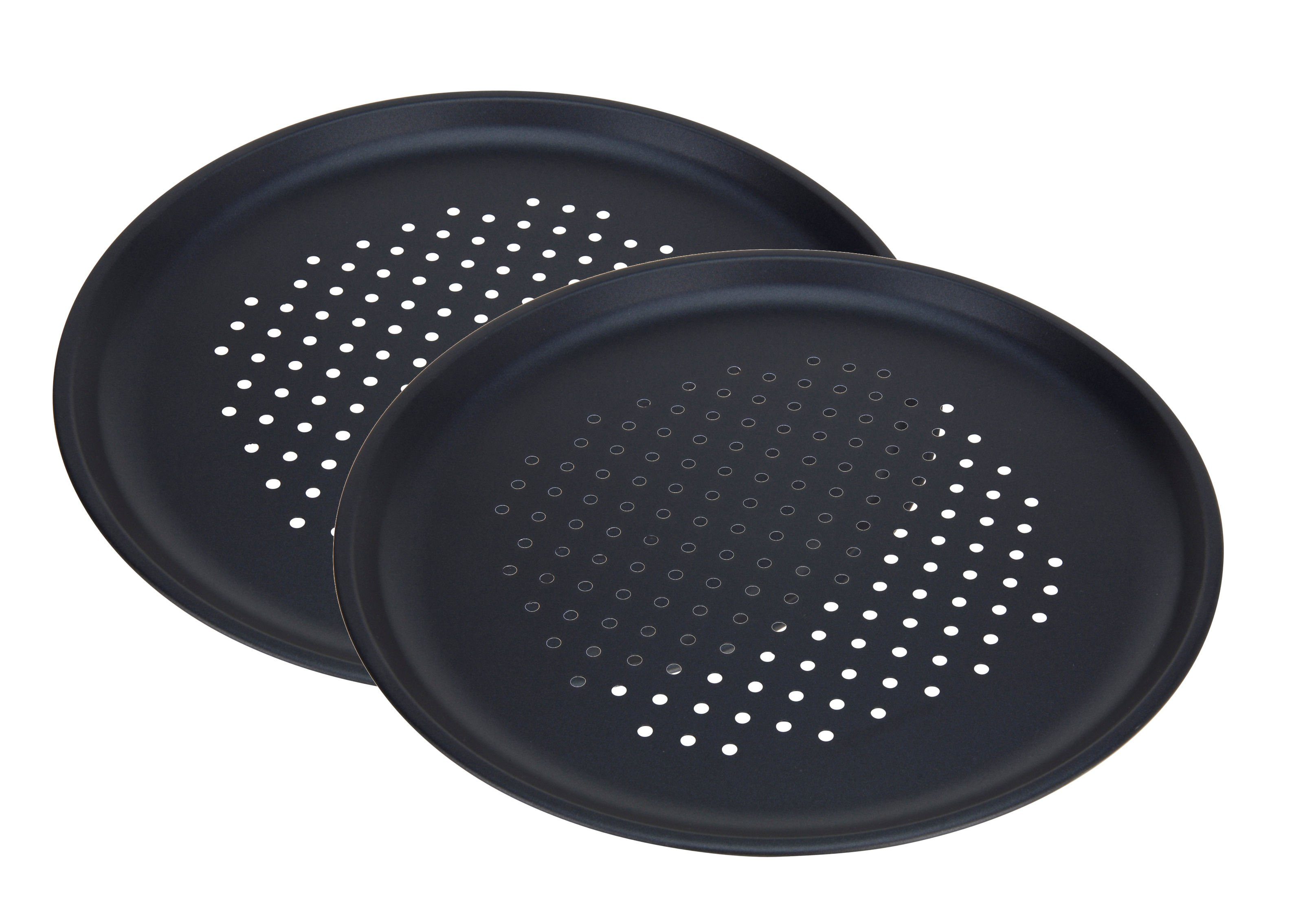 Metall Pizza Backblech gelocht - 2er Set - schwarze Pizzableche mit antihaft Beschichtung