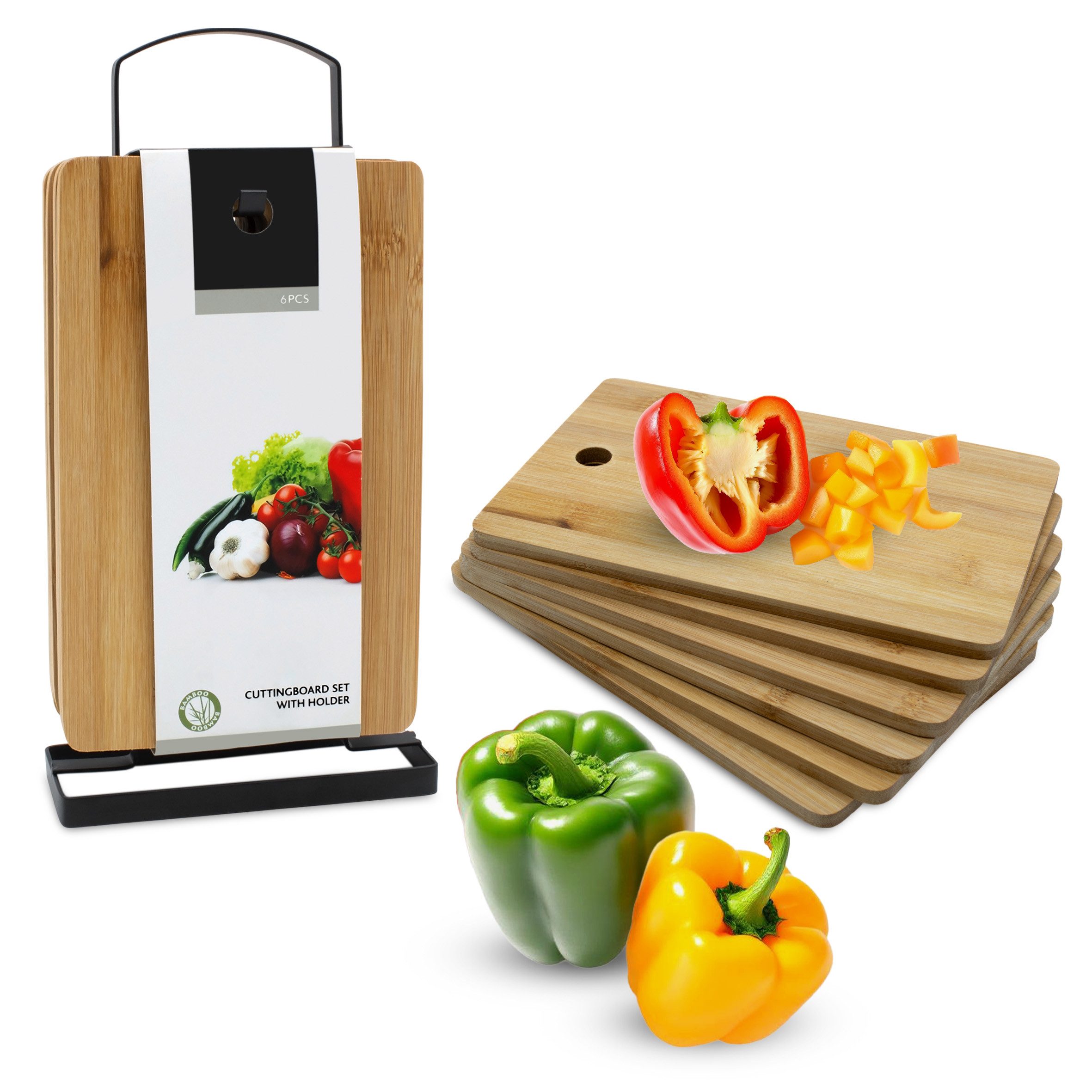 Lieferumfang | 1x 6er Set Bambus Schneidebrettchen mit Metallständer |