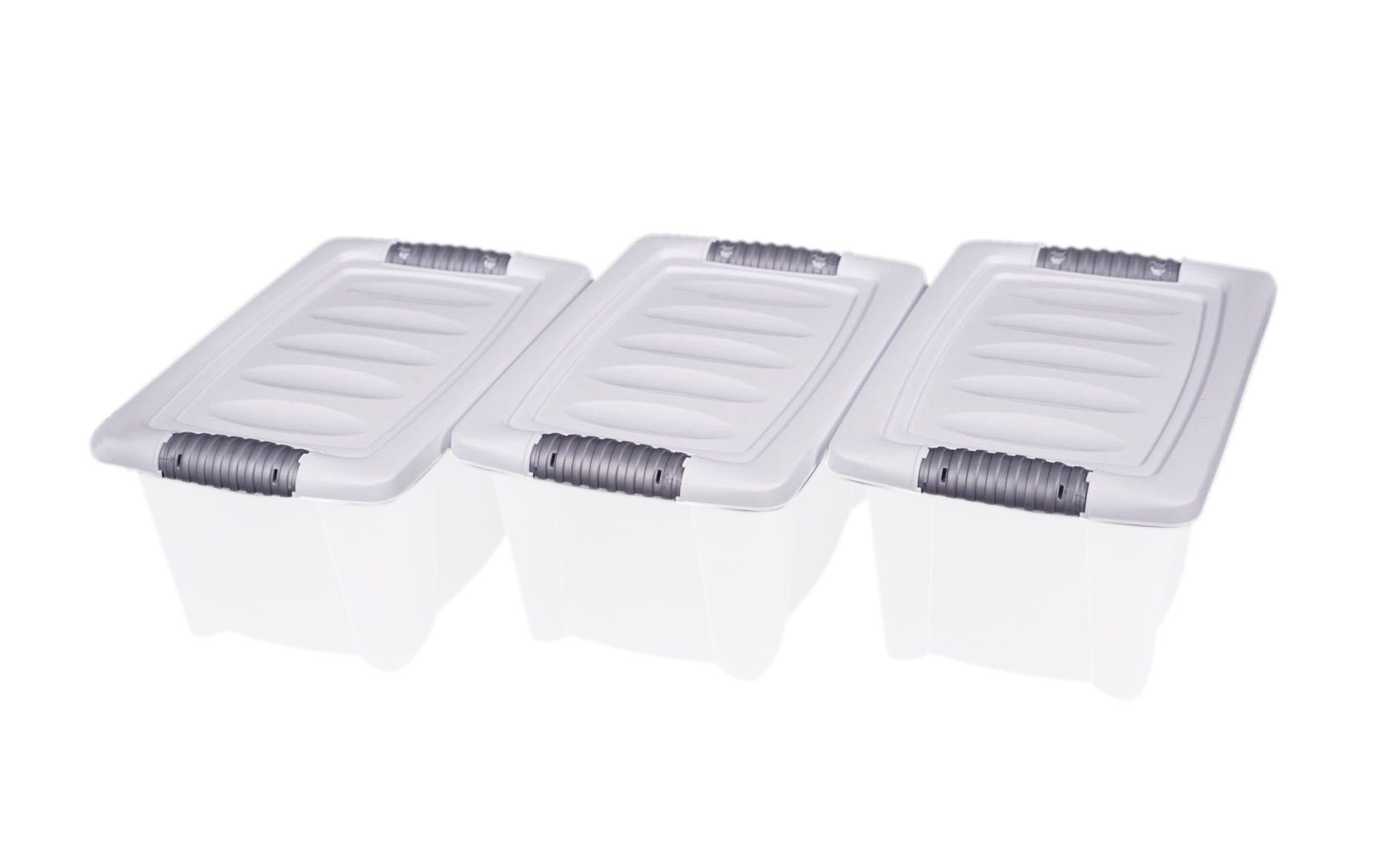 Kunststoff Stapelbox mit weißem Deckel im 3er Set jeweils ca. 7 Liter Fassungsvermögen