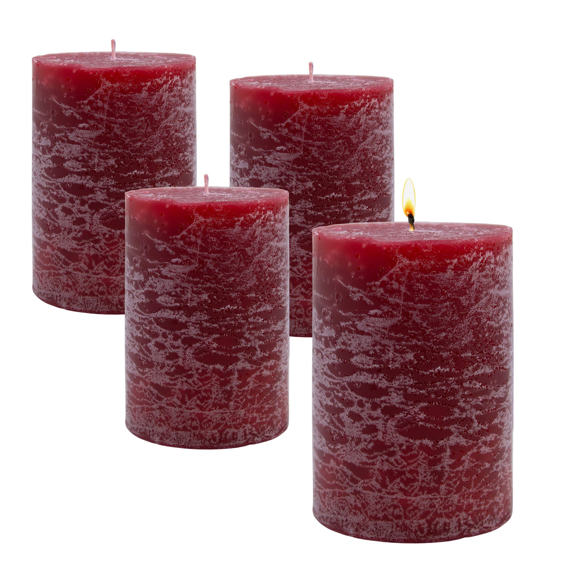 Lieferumfang | 1x 4er Set Echtwachs rustikal Stumpenkerzen 14 x 7 cm |