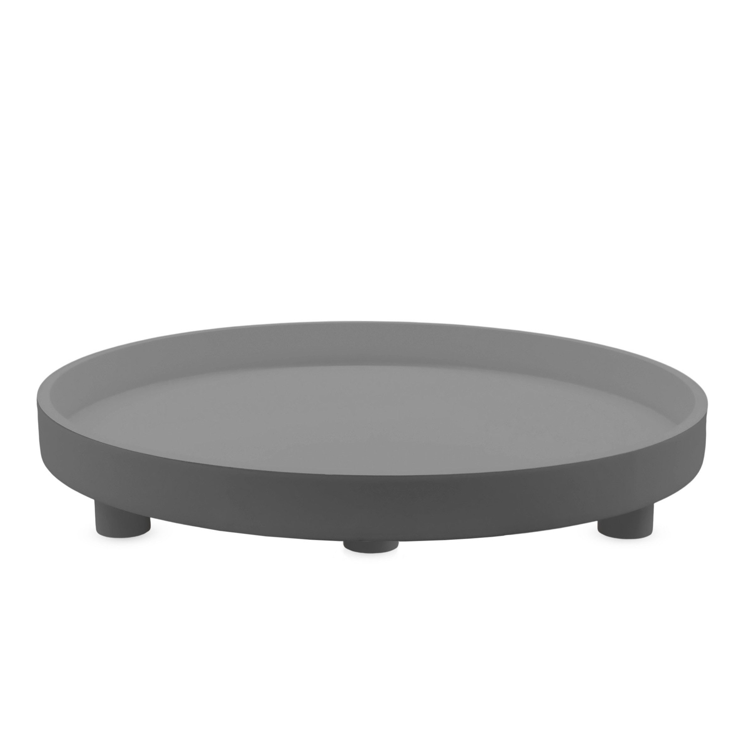 XL Dekotablett rund auf Füßen 38 x 6 cm - grau - Holz Kerzentablett groß mit Rand