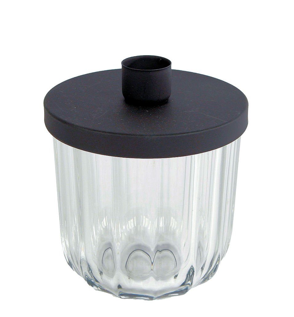 Eleganter Metall Stabkerzen Halter in schwarz mit Glas zum befüllen und dekorieren