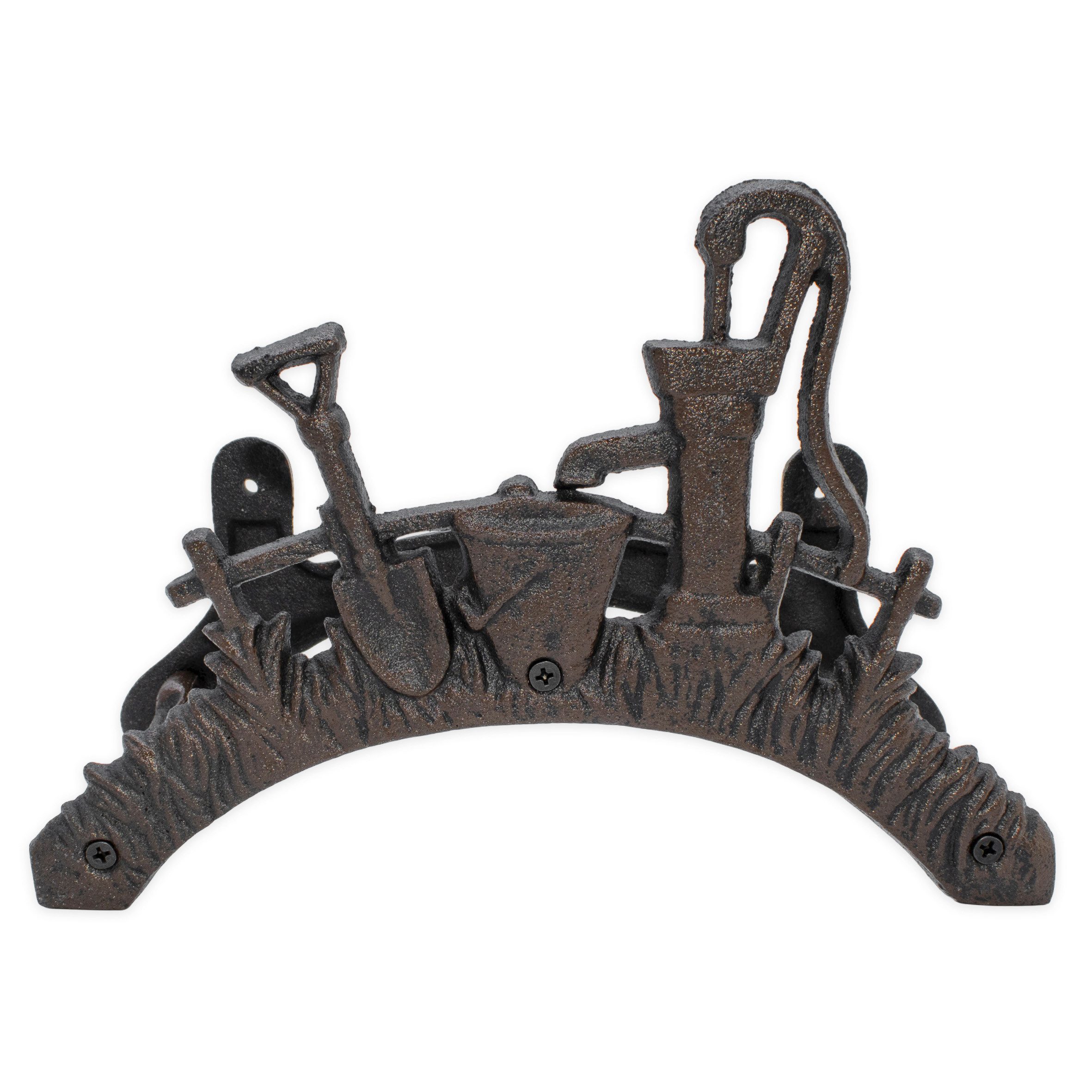 Gusseisen Wandschlauchhalter Motiv "Wasserpumpe" - 29 x 18 cm - Metall Garten Schlauch Wand Halterung