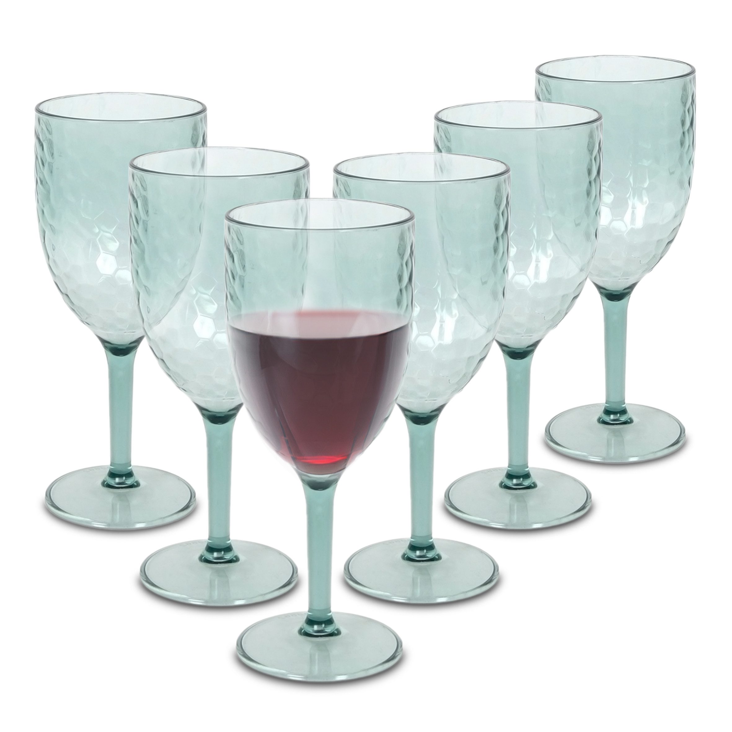 6er Set robuste Mehrweg Kunststoff Weingläser in transparent grün mit jeweils ca. 350 ml Fassungsvermögen