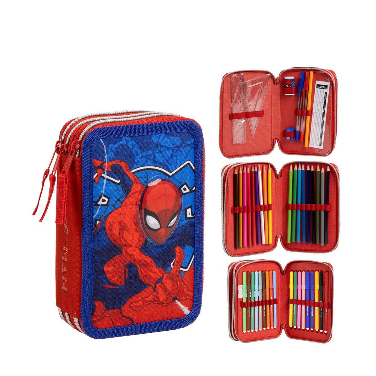 Das Spiderman Web Federmäppchen mit 3 Etagen ist ein echtes Highlight für kleine Superhelden und Marvel-Fans! Mit dynamischem Spidey-Design in kräftigem Rot und Blau bringt dieses Etui jede Menge Action in den Schulalltag. Perfekt für Vorschule und Grundschule – funktional, robust und voll im Trend.