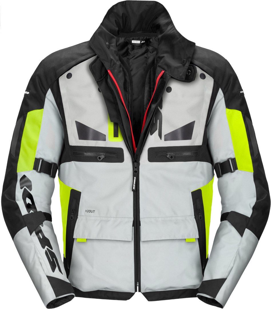 Die SPIDI Crossmaster Motorrad Textiljacke ist ein mehrschichtiges Adventure-Outfit und wurde für gemäßigtes Klima entwickelt und mit Step-In Wear-Technologie ausgestattet. Die Außenjacke ist aus hochfestem Polyester gefertigt und bietet eine hervorragende Abrieb- und Durchstoßfestigkeit. Zwei Mesh-Einsätze und zwei Luftauslässe sorgen für eine hervorragende Luftzirkulation. Zur Standardausrüstung von Step-In Wear gehören 2 separate Innenjacken: eine Regenjacke aus atmungsaktivem und wasserdichtem 5k/5k H2Out®-Gewebe und ein 100 g/m² Thermofutter. Die Regenjacke kann einzeln, mit oder ohne Thermofutter verwendet werden. 360°-Visibility dank 3M® Scotchlite®-Reflektoren ermöglicht hervorragende Sichtbarkeit bei Nacht und eine Reißverschlussverbindung zwischen Jacke und Hose bietet zusätzliche Sicherheit. Damit die Jacke perfekt angepasst werden kann, verfügt sie über das integrierte SPIDI-Ergofit-System auf den Armen und einen verstellbaren 2-Knopf-Verschluss am Kragen mit einem 3.Knopf, der nützlich ist, um den Kragen an wärmeren Tagen offen zu halten. Herausnehmbare Protektoren der Stufe 1 sind enthalten: Warrior Lite auf den Schultern, ForceTech an den Ellenbogen.