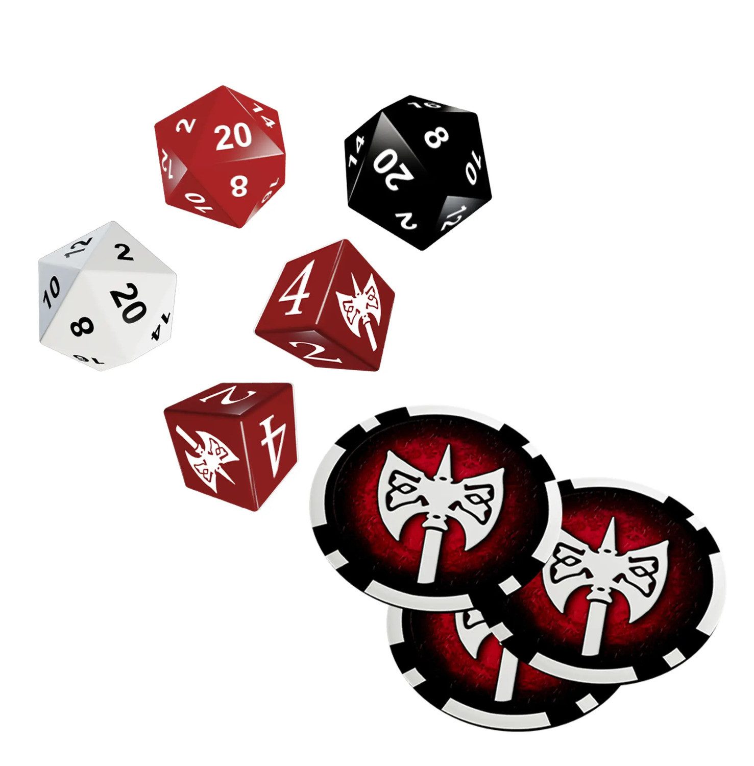 Das Zwergen-Würfelset enthält drei zwanzigseitige und zwei sechsseitige Würfel, die du zum Spielen von "Das Schwarze Auge" verwenden kannst. Einer der zwanzigseitigen Würfel ist in Rot gehalten, ein Würfel ist weiß und einer schwarz. Die sechsseitigen Würfel zeigen statt der Zahl 6 ein Zwergen-Symbol. Das Set enthält zudem drei Schicksalspunkte. Mittels Schips kann dein Held die gefährlichsten Situationen überstehen, in denen manch anderer den sicheren Tod gefunden hätte, und nicht selten sind sie das Zünglein an der Waage, wenn es darum geht, heldenhafte Taten zu vollbringen.