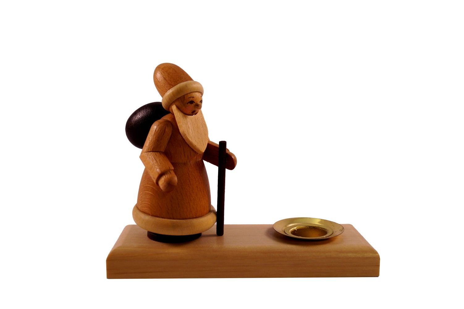Kerzenhalter Weihnachtsmann natur Machen Sie noch mehr aus Ihrer Tischdeko zum Beispiel mit einem schönen Kerzenhalter. Dieser tolle Kerzenhalter hat eine Размер von 8,5 cm, natur gehalten und komplett aus Holz gefertigt. Bestückt ist er mit einem Weihnachtsmann mit Stock und Sack. Die Tülle hat einen Metalleinsatz und kann für normale Pyramidenkerzen genutzt werden. Der gesamte Kerzenhalter wird in verschiedenen Schritten komplett in Seiffen in einem kleinen Familienbetrieb gefertigt HxBxT 8x10x3,5cm NEU |