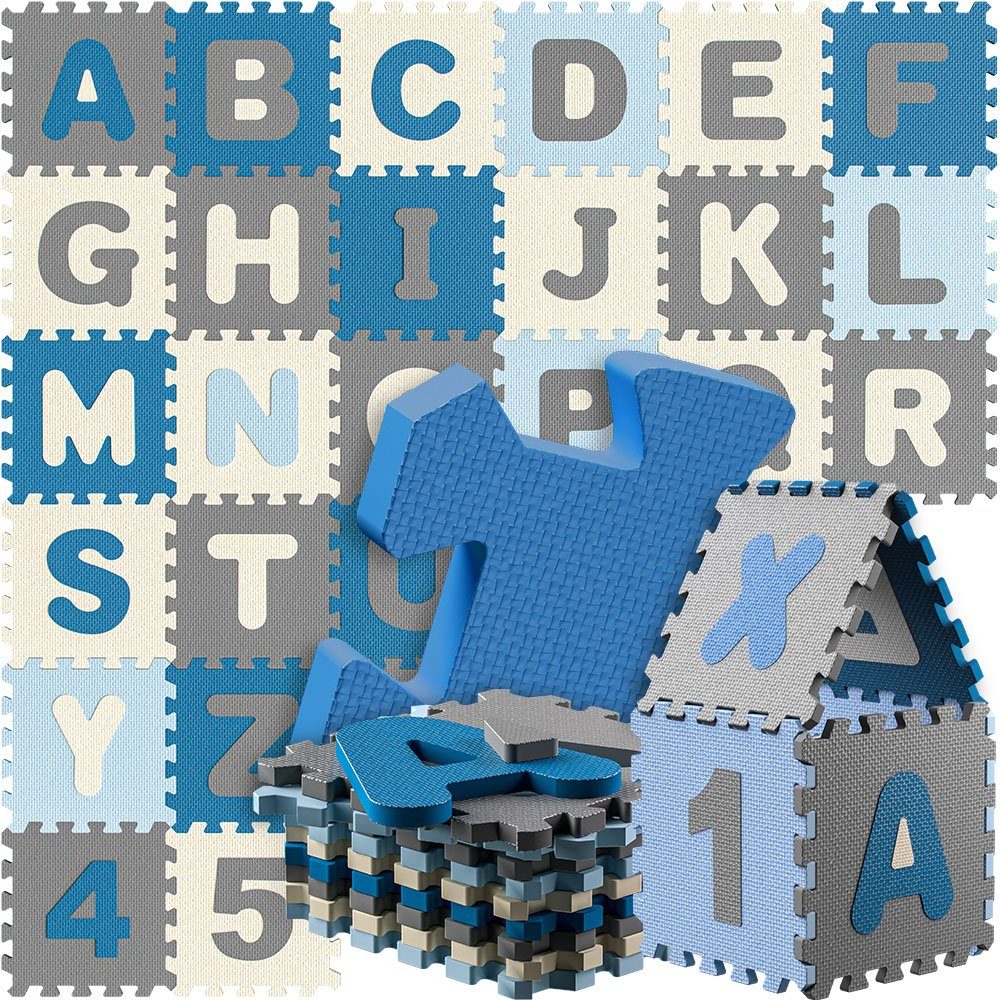Auch bei häufigem Gebrauch behalten die Teile ihre Farbe und Form, sind unendlich erweiterbar und leicht zu reinigen. Die bunten Puzzlematten mit den Zahlen von 0-9 und den Buchstaben von A-Z haben ein ansprechendes Design, das zum Spielen anregt.