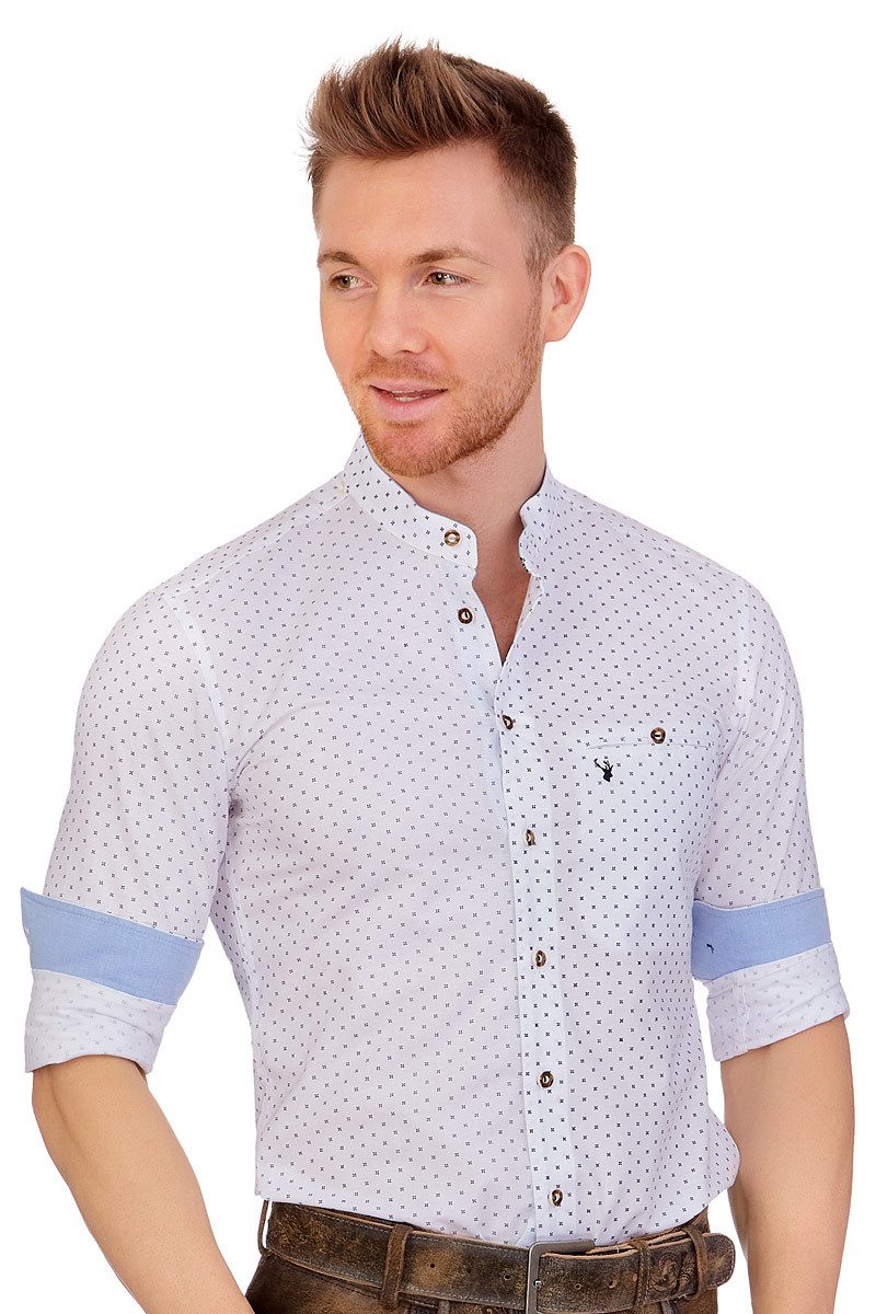 Nemo, ein trachtiges Multitalent aus dem Hause Spieth & Wensky, ist in Kombination mit Lederhose und Trachtenjeans ein perfekter Wiesn-Begleiter. Das geschmackvolle langarm Trachtenhemd mit hohem Baumwoll-Anteil, gefertigt im Slim Fit-Schnitt, hat eine fantastische Stoffqualität im Oxford-Style mit feiner Korbgeflecht-Musterung sowie ein zartes Printmuster aus Pünktchen in Vierergruppen. Der schicke Stehkragen und die leicht abgerundeten, weitenregulierbaren Manschetten der langen Ärmel sind innen mit Kontraststoff verstärkt und die Ärmelschlitze haben je einen Knopf. In Höhe der linken Brust ist eine doppelte Paspeltasche mit Knopf und kleiner Hirschkopf-Stickerei eingearbeitet. Die Stockzwickel am Ende der Seitennähte unten am Saum sind aus Kontraststoff gefertigt. Komplettiert wird das vielseitige Herrenhemd durch kernige Knöpfe in Hirschhorn-Optik. Bitte beachten Sie den Größenzuschlag bei Размер 49/50 (4XL).