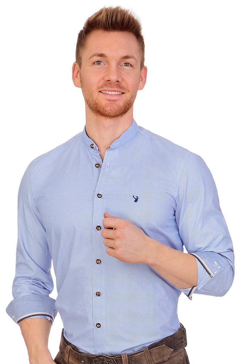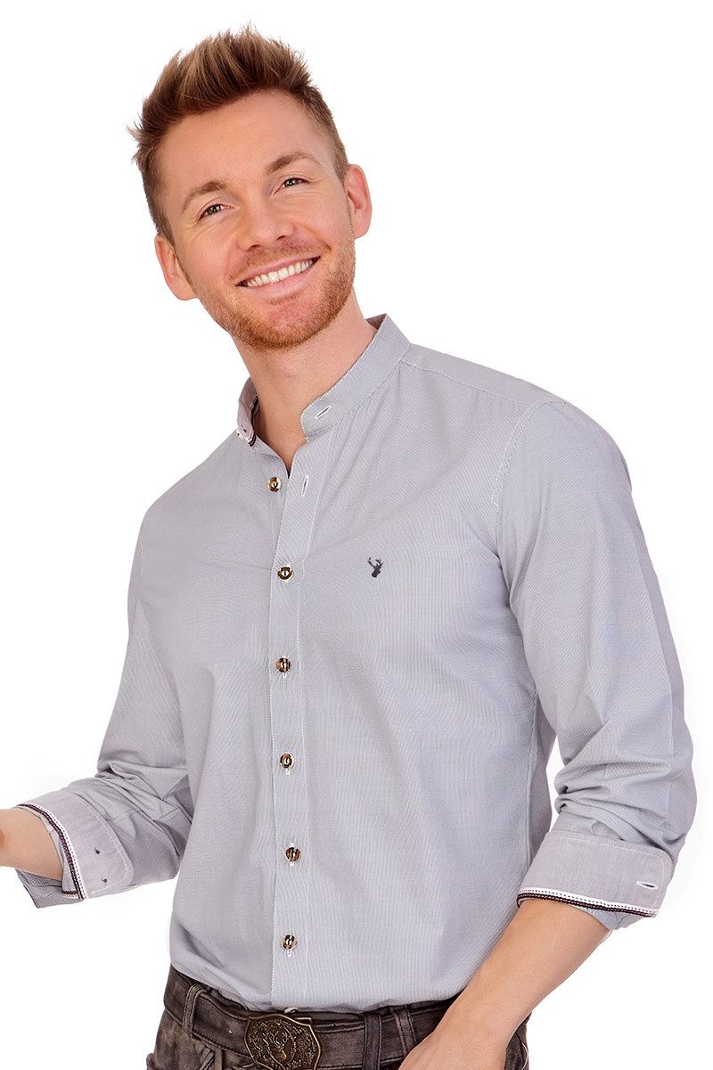 Das modische Trachtenhemd Neo, eine herrliche Kreation aus dem Hause Spieth & Wensky, zeigt sich zünftig und vielseitig zugleich. Es hat lange Ärmel mit abgerundeten Manschetten und einen stylischen, verstärkten Stehkragen mit Knopf. Das zarte Streifen-Webmuster aus hauchfeinen Linien harmoniert super mit den raffiniert bearbeiteten Knöpfen im Hirschhorn-Look. Auf der linken Brust befindet sich eine kleine Hirschkopf-Stickerei. Der Stoff der durch zwei Knöpfe weitenregulierbaren, mit Kontraststoff verstärkten Manschetten ist um 45° gedreht. Auch die Ärmelschlitze sind je mit einem Knopf versehen und die Stockzwickel sind aus Kontraststoff gefertigt. Für einen tollen Tragekomfort sorgt der hohe Baumwoll-Anteil sowie die tolle Stoffqualität. Das universelle Herrenhemd lässt sich fabelhaft zur Lederhose und Trachtenjeans kombinieren. Bitte beachten Sie den Größenzuschlag bei Размер 49/50 (4XL).