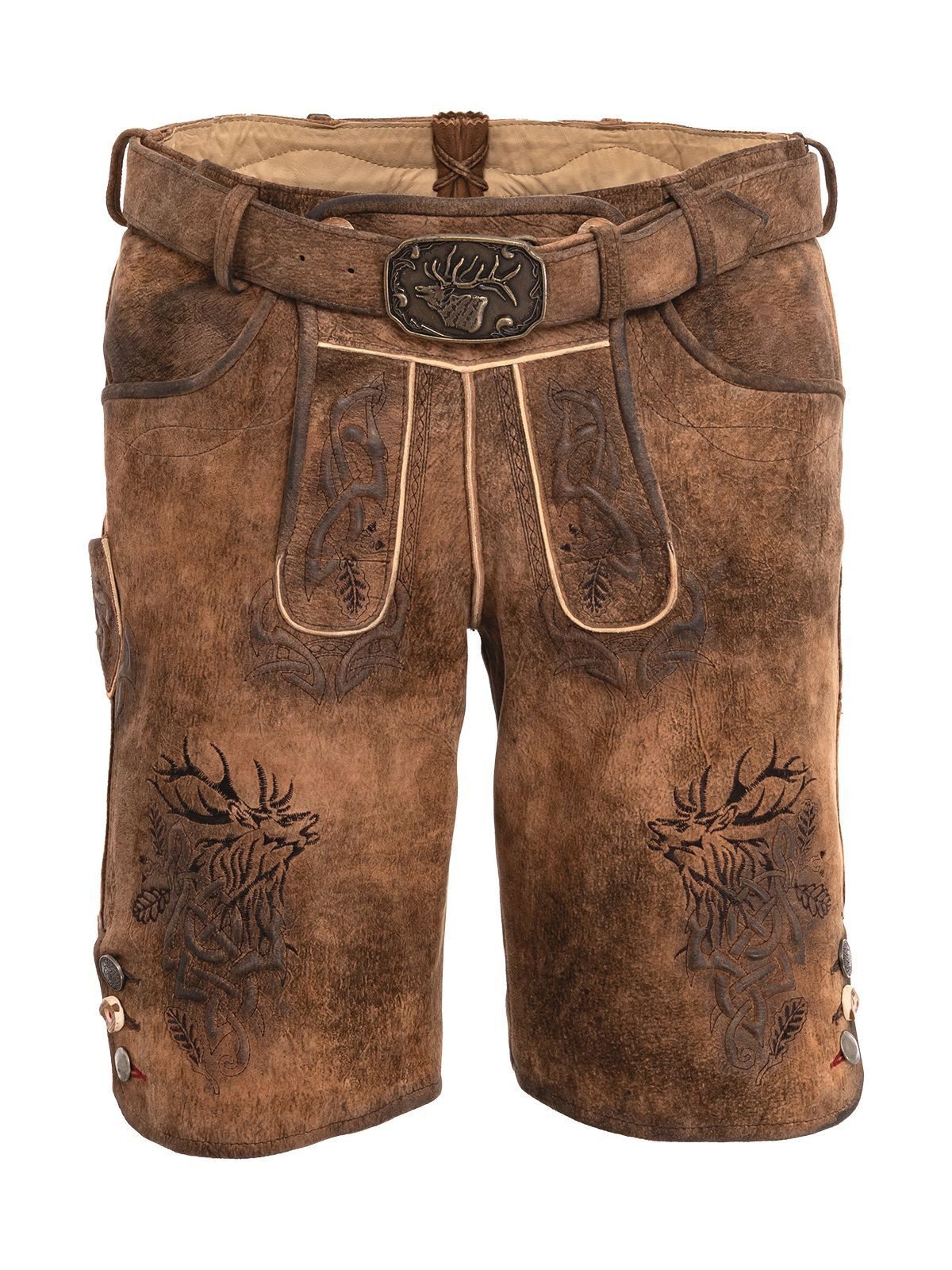 Die Traditionsmarke Spieth & Wensky wurde 1913 gegründet. Die Philosophie der Marke basiert auf natürliche Materialien mit einzigartigem Design. Im Zentrum der Werte von Spieth & Wensky stehen Эко-товары, Regionalität und Umweltbewusstsein. Die handgefertigte Nercel Lederhose von Spieth & Wensky für Herren ist ein absolutes Muss für das Oktoberfest. Das weiche, anschmiegsame Ziegenveloursleder mit detailreichen Stickereien auf den Oberschenkeln, an den Seiten sowie auf dem Latz werden zu einem echten Hingucker. Ein weiteres Highlight ist die Gürtelschnalle mit Hirschmotiv. Im Rücken findest du den Zwickel durch diesen kannst du ganz einfach die Hose an deinen Bauchumfang anpassen. Die modischen Knöpfe aus Horn und Metall am Latz sowie am Hosenbein runden die edle Lederhose gekonnt ab. Zusätzlich gibt es eine Gesäßtasche für das Portemonnaie und eine kleine Tasche am rechten Hosenbein, um Kleingeld z.B. aufzubewahren. Diese Lederhose kombiniert traditionelle Handwerkskunst mit praktischen Details und ist ein echter Hingucker auf dem Oktoberfest.