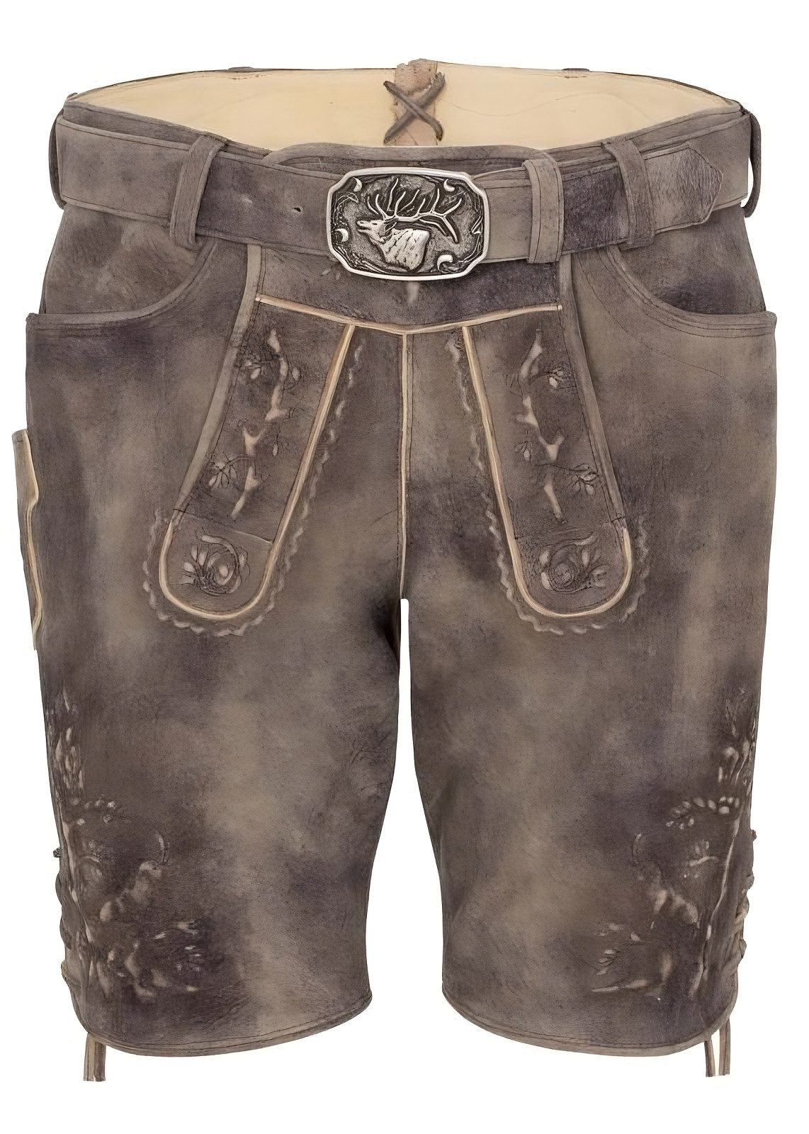 Besondere Merkmale | Herren Trachtenhose Lederhose kurzhose mit Gürtel Ziegenvelour |
