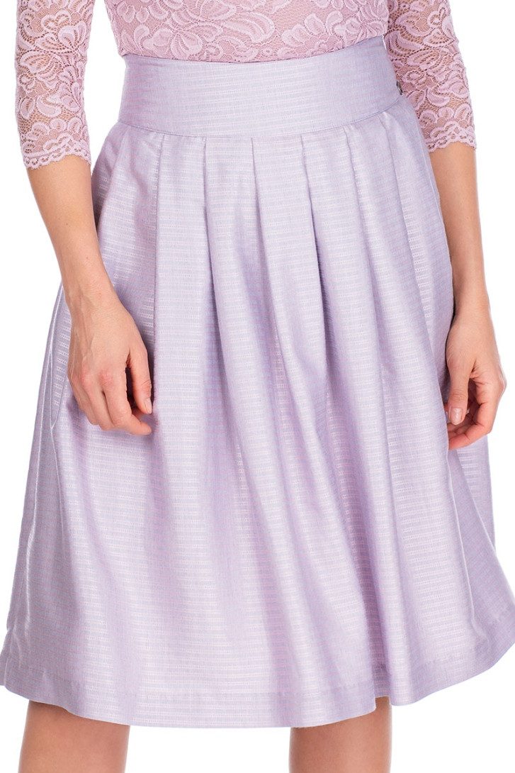 Der fantastische, knapp wadenlange Trachtenrock Domenika in Rosé ist ausgestellt in A-Linie mit breitem Bund sowie Kellerfalten gearbeitet und besteht aus fein glänzendem Jacquard im zarten Querstreifen-Design, gestaltet aus Streifen mit zarten Tupfen und Streifen mit Fischgratmuster. Der breite Bund ist verstärkt und links gibt es einen verdeckten Reißverschluss. Eine Eingrifftasche rechts mit unscheinbarem Reißverschluss bietet praktischen Stauraum. Dieser Rock in angenehm weicher Stoffqualität lässt sich bezaubernd zu Trachtenbluse, -Body und -Shirt kombinieren.