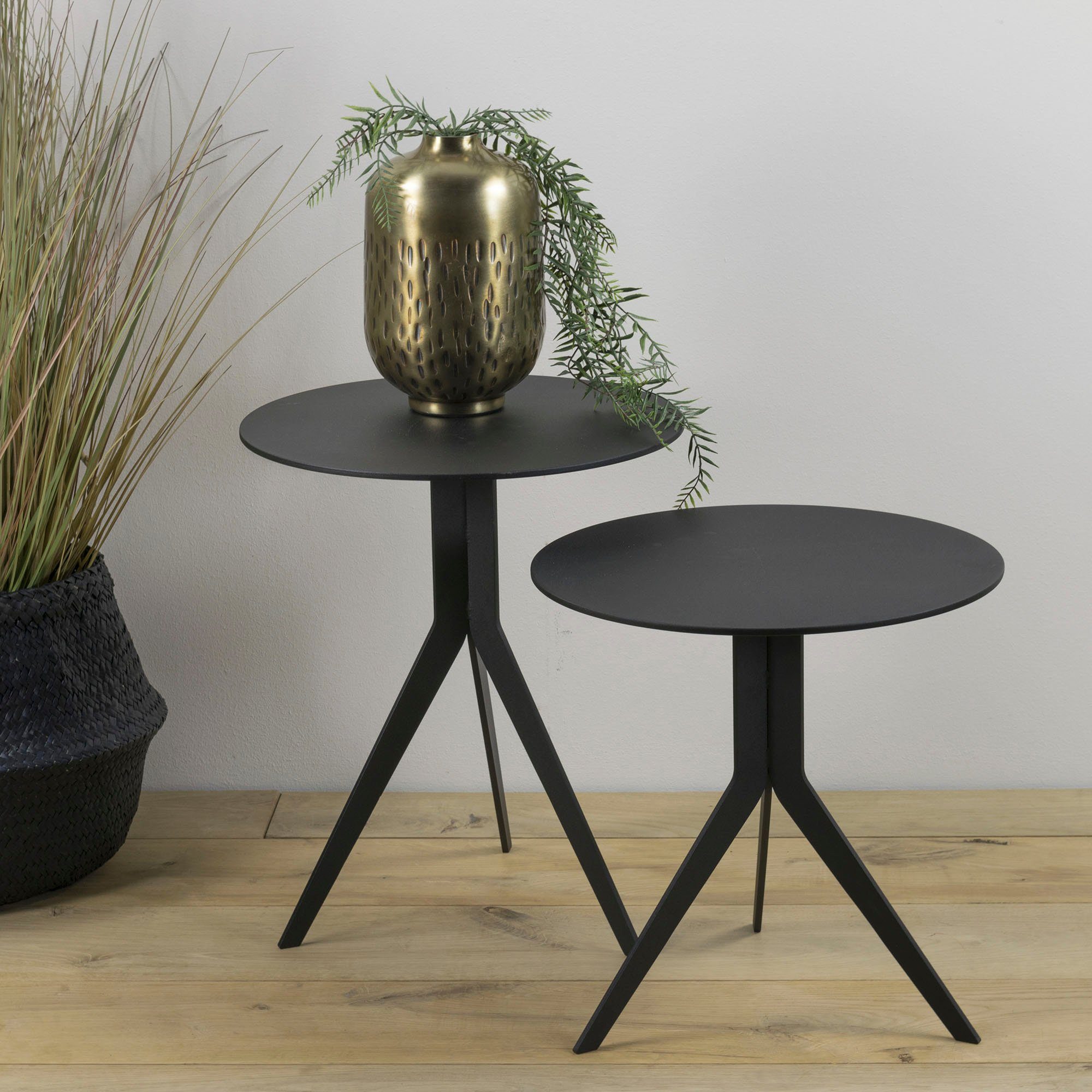 Vielseitig einsetzbar ist der charmante Beistelltisch »Daley« von Spinder Design aus hochwertigem Stahl. Der schicke Industrial Stil besticht durch klare Linien und den mattschwarzen Stahl. Für einen Blickfang sorgt das ausgestellte Dreifußgestell. Dank der schlichten und zeitlosen Gestaltung fügt sich dieses Kleinmöbel mit Leichtigkeit in unterschiedliche Wohnstile ein. Ob klassisch, puristisch oder stylisch eingerichtet, dieser Tisch sorgt überall für einen geschmackvollen Blickfang. Auf der runden Tischplatte lassen sich Süßigkeiten oder Getränke lagern. Du kannst den Tisch im Впередen zum Platzieren von Dekoartikeln oder Zimmerpflanzen hervorragend nutzen. Pulverbeschichtet und pflegeleicht: der charmante Beistelltisch »Daley« von Spinder Design aus hochwertigem Stahl.