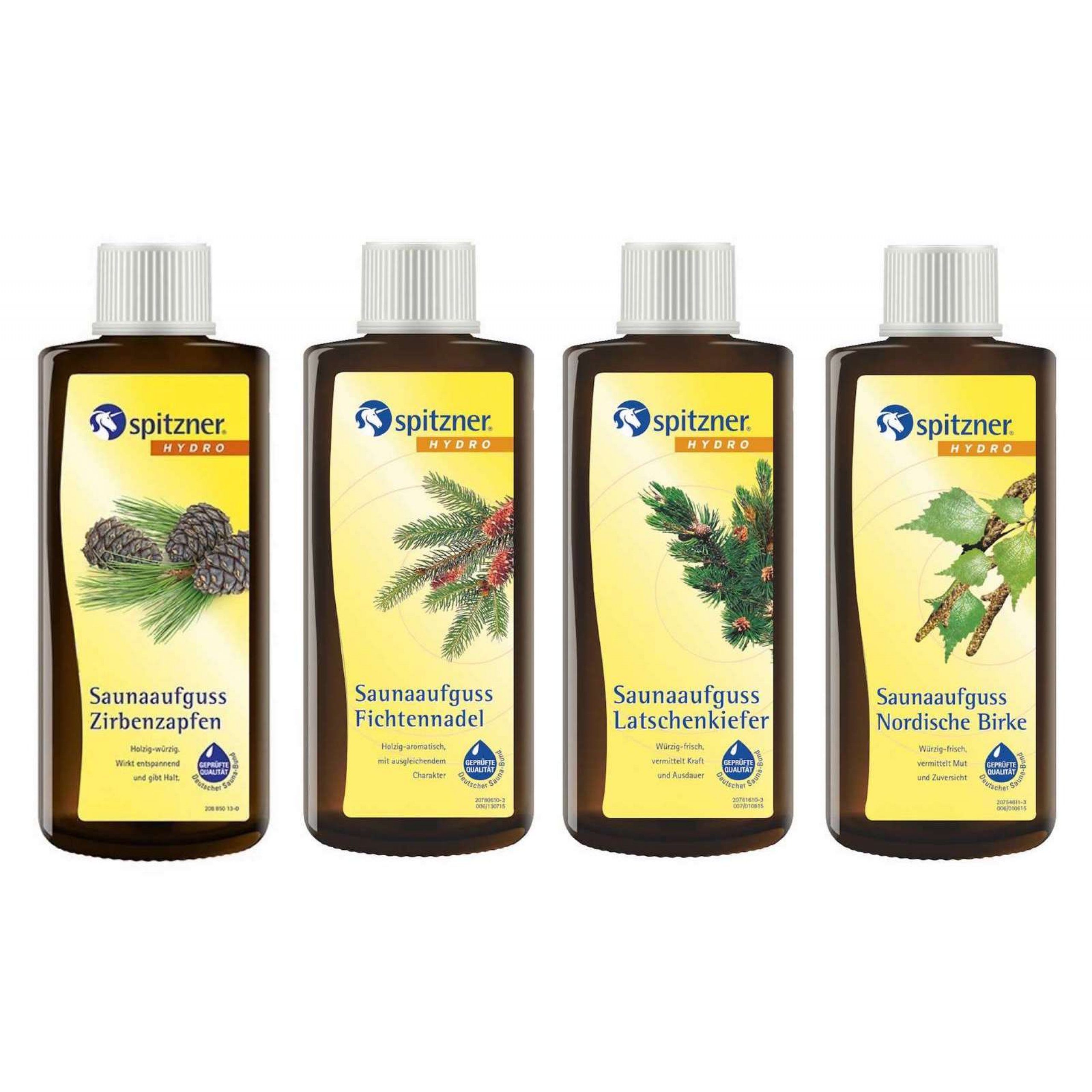 Aufgusskonzentrat Spitzner Saunaaufguss 4er Set Zirbenzapfen Fichtennadel