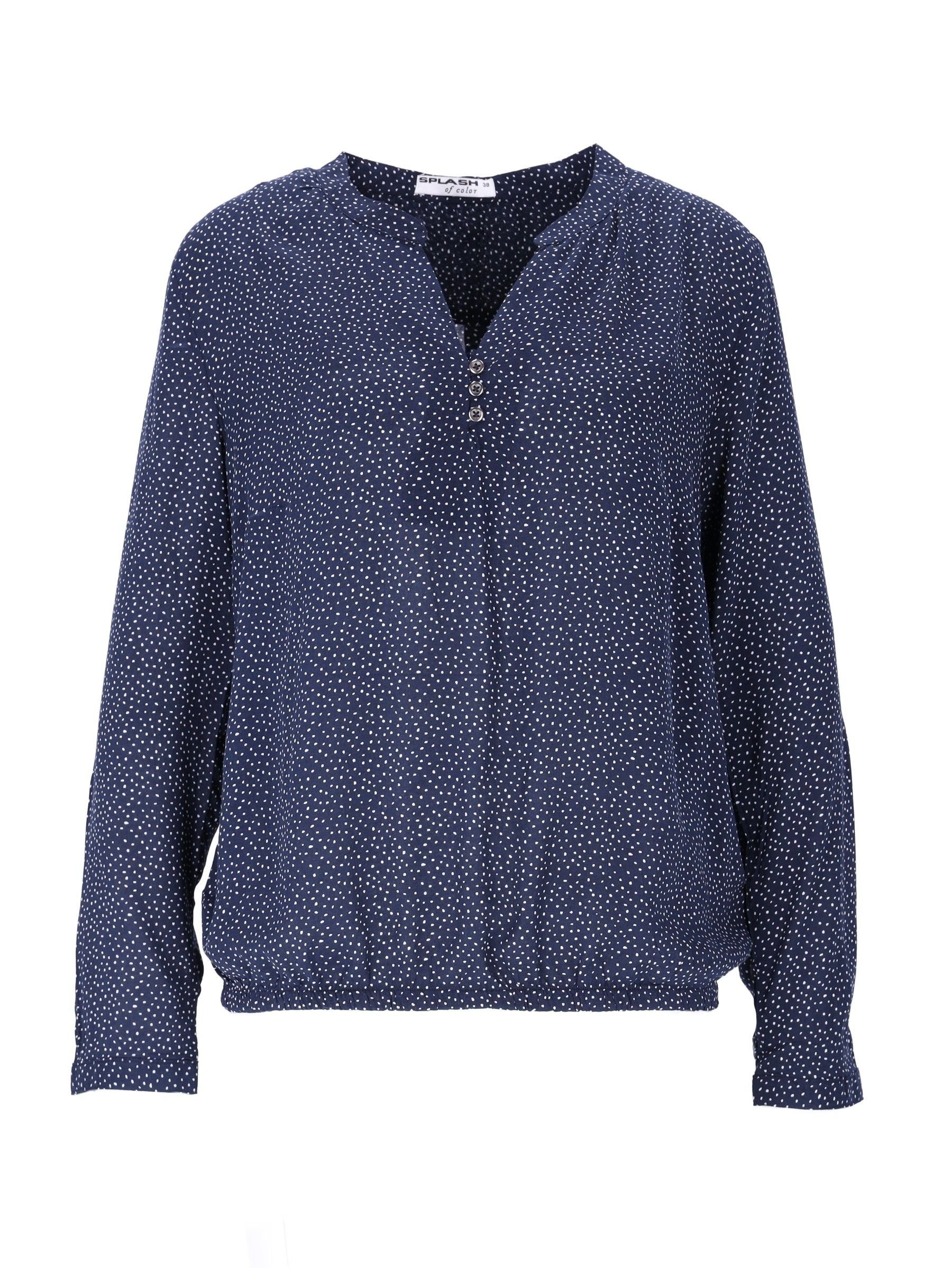 Unsere Viskose Bluse ist bequem geschnitten und fällt locker durch den Gummizug im Bund.