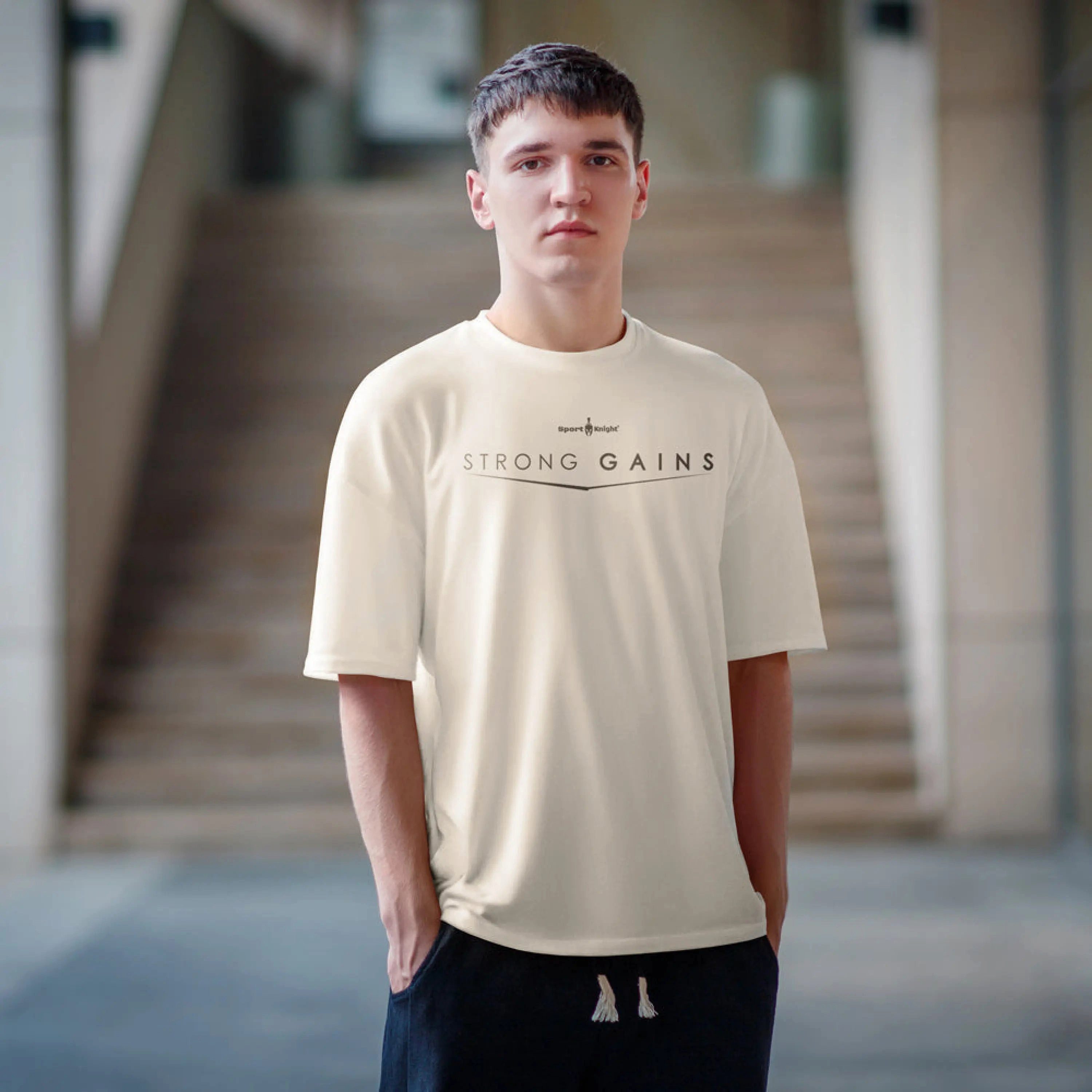 Das Sport-Knight® Oversize T-Shirt überzeugt durch sein sportlich-lässiges Design und den schlichten „Strong Gains“ Druck auf der Brust. Der angesagte Oversize-Schnitt bietet maximale Bewegungsfreiheit und ist ideal für Sport und Alltag.