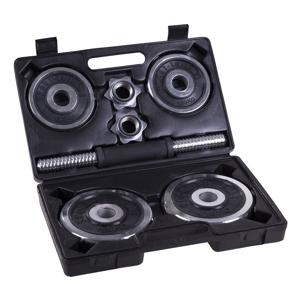 Das Sport-Thieme Kurzhantel-Set "10 kg" inkl. Koffer ist ein hochwertiges Set für das Training im Fitnessstudio oder den eigenen vier Wänden. Die griffige Hantelstange liegt während des Ihres Krafttrainings sicher und rutschfest in der Hand. Das Hantel-Set hat ein maximales Gewicht von 10 kg. Die Kurzhantelstange, Hantelscheiben mit einer Gummieinlage im Inneren und die Verschlüsse werden Ihnen in einem robusten ABS-Koffer geliefert. Dieser sorgt für einen schnellen Transport und eine sichere Aufbewahrung nach Ihrer Fitness.