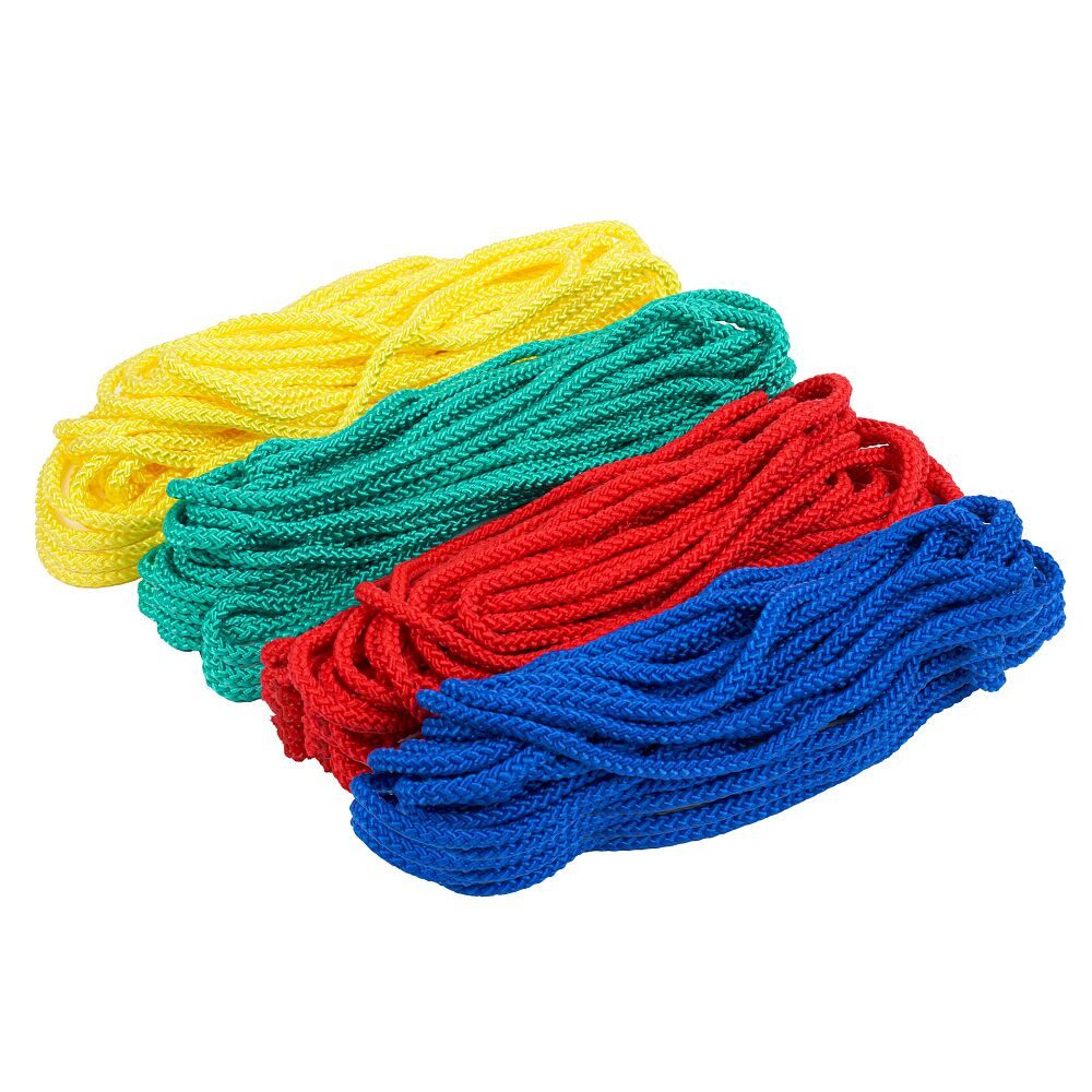 Die Polypropylen-Springseile des Sport-Thieme Gymnastikseile-Set "Bunt" sind jeweils 3 m lang. Damit eignen sie sich auch für sehr große Menschen mit mehr als 2 m Körpergröße. Die 95 g leichten Seile sind zudem nach den offiziellen Vorschriften des Internationalen Turnerbundes FIG geflochten. Das 40er Set besteht aus jeweils 10 Seilen in den Farben Blau, Grün, Gelb und Rot. Das 20er Set besteht jeweils 5 Seile in den Farben Blau, Grün, Gelb und Rot. Das 32er Set besteht aus jeweils 8 Seilen in den Farben Blau, Grün, Gelb und Rot.