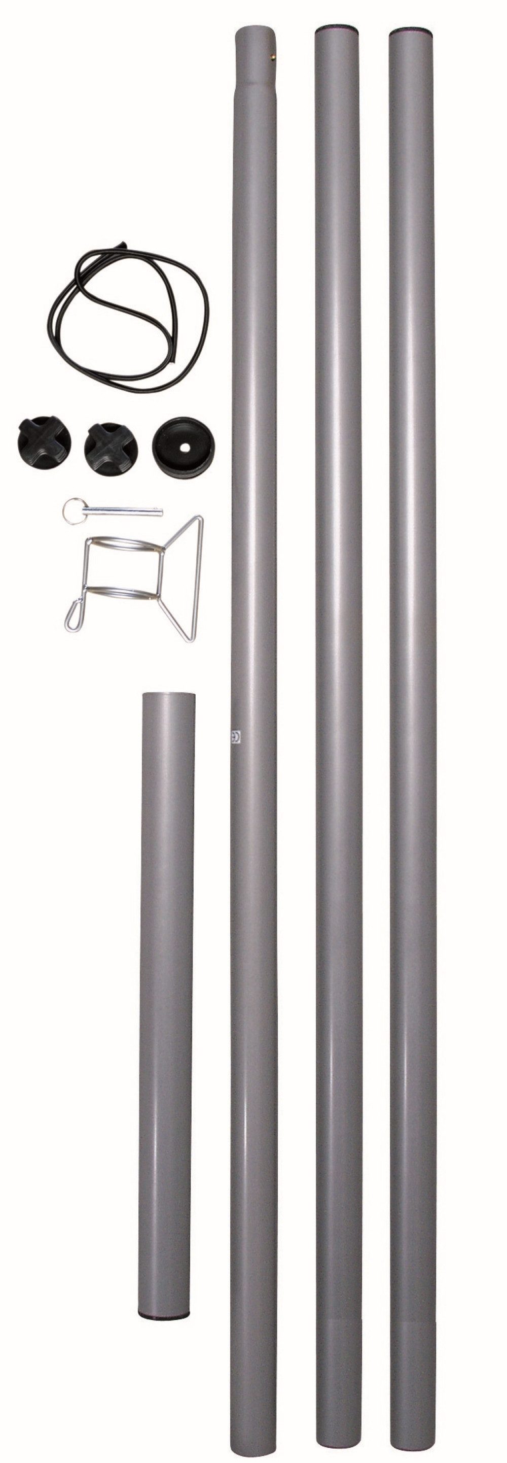 Geliefert wird ein Mast-Set bestehend aus dem Mast, einer Bodenhülse und einem Gummiseil!