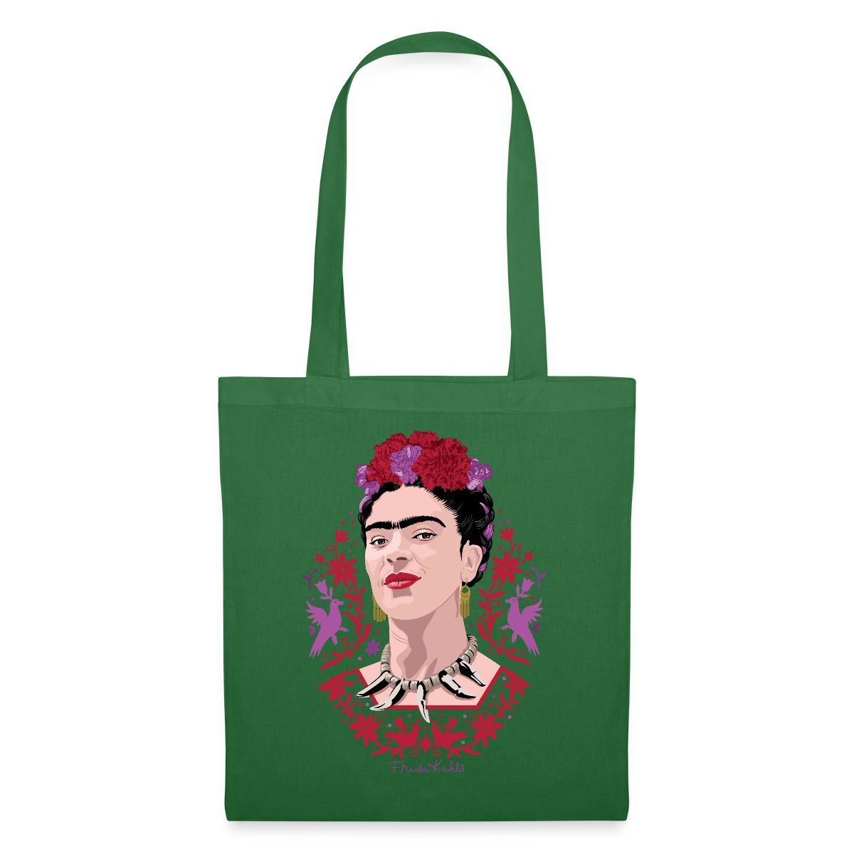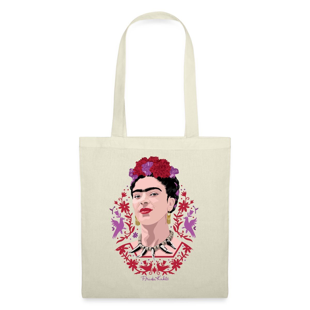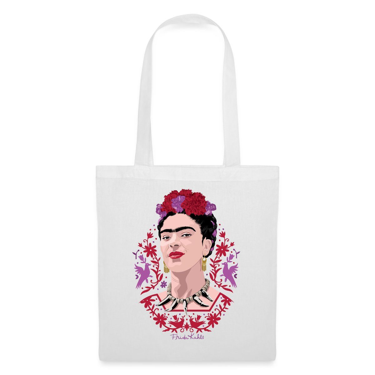Spreadshirt Henkeltasche Frida Kahlo Portrait Mit Blüten Lila Und Rot Einkaufstasche (1-tlg)