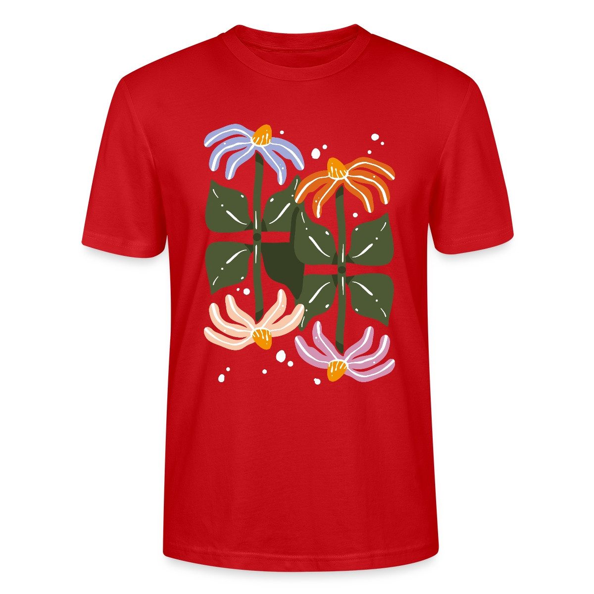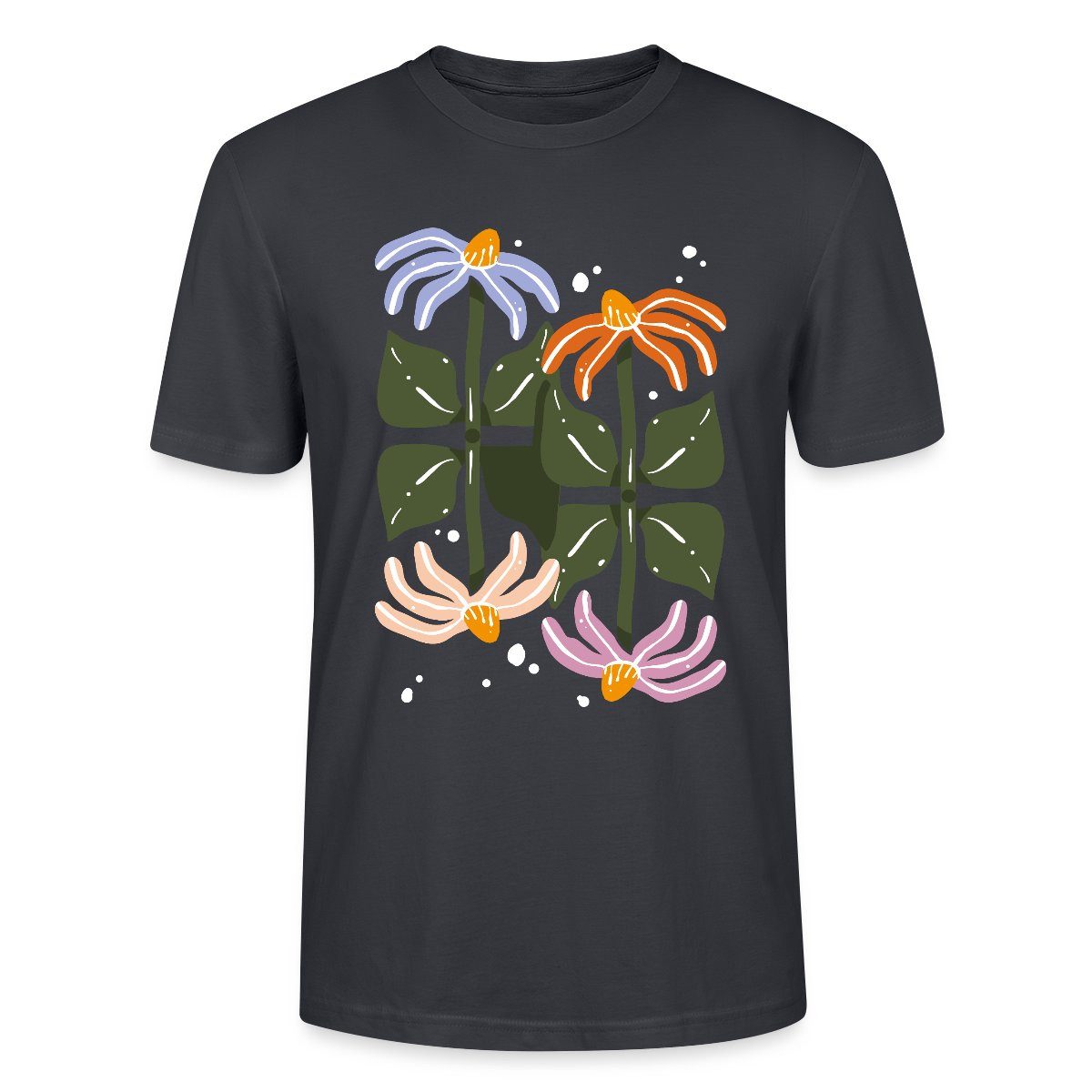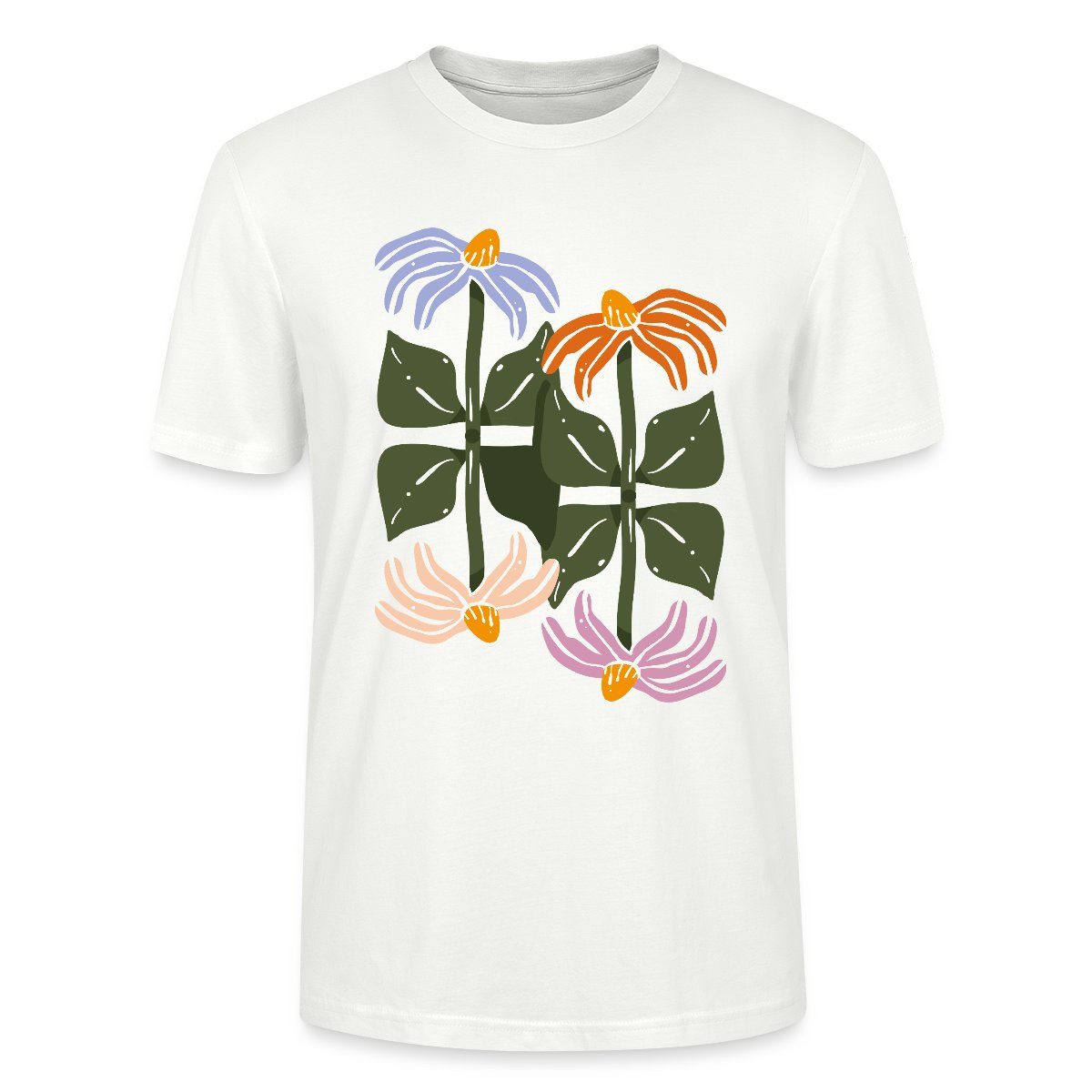T-Shirt Bunte Retro Blumen Illustration Im Boho Stil Unisex Bio T-Shirt