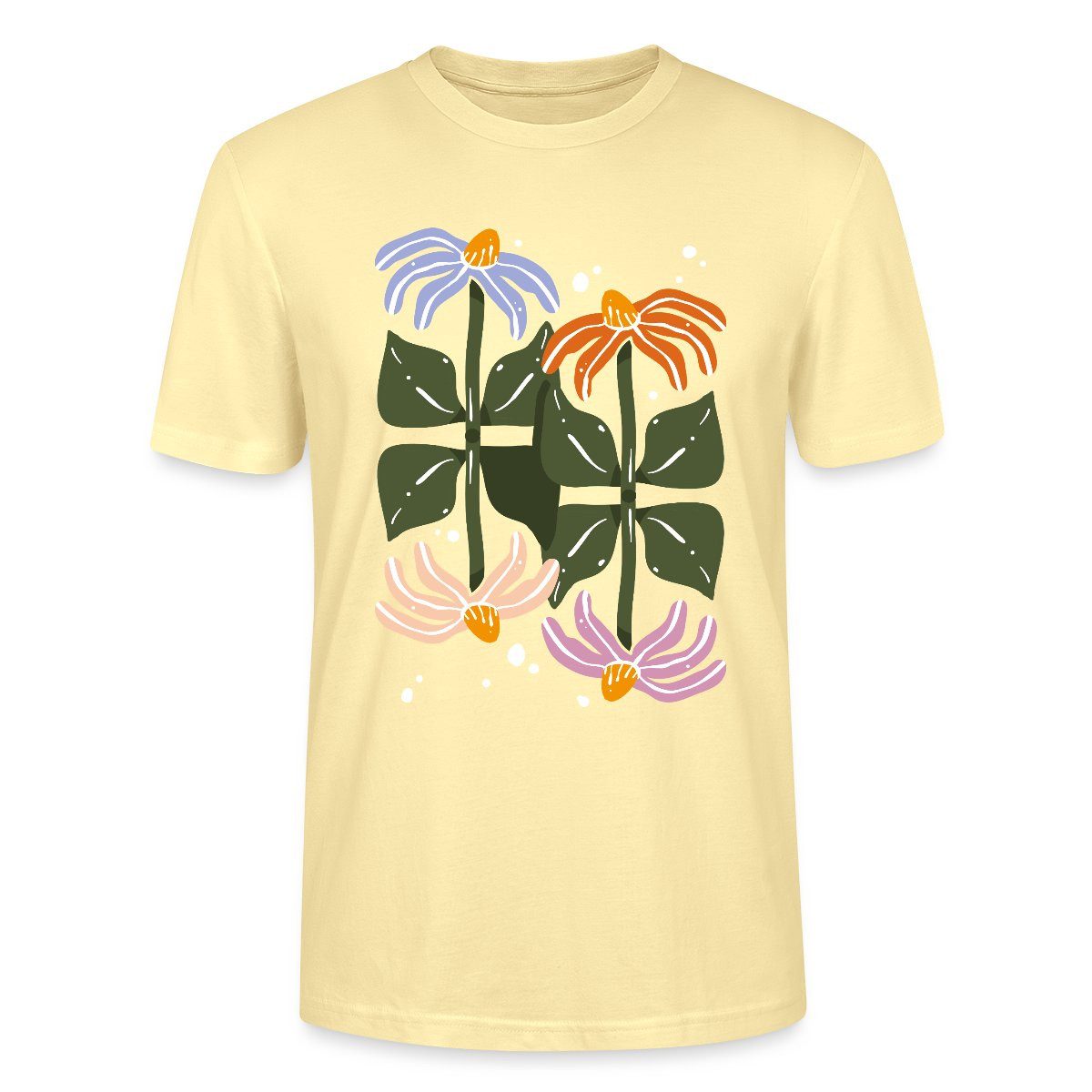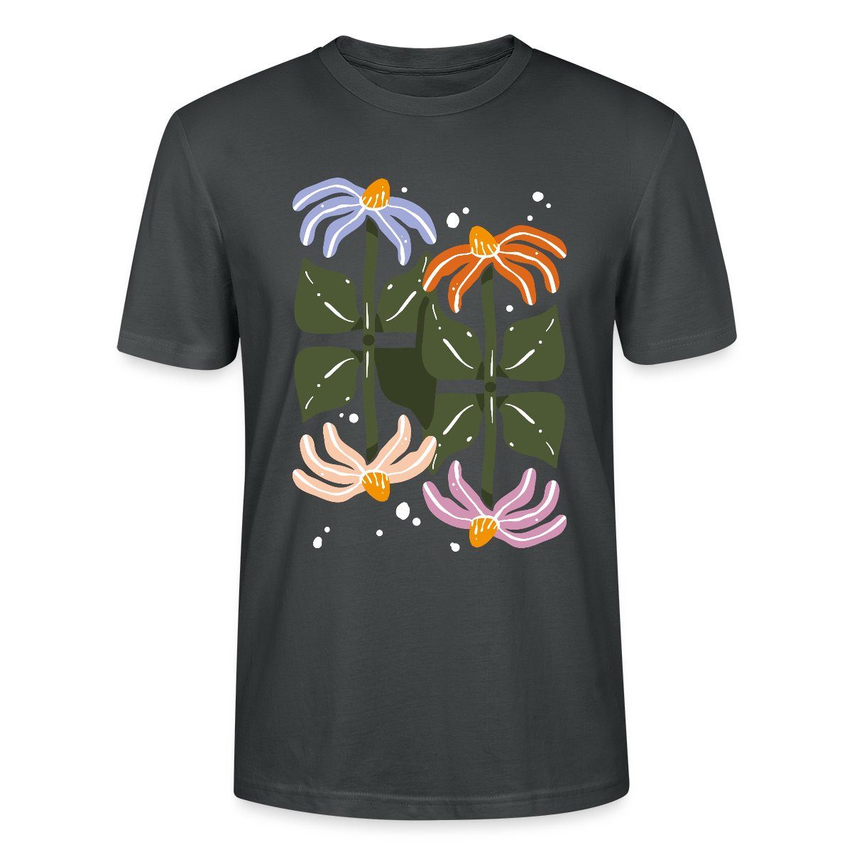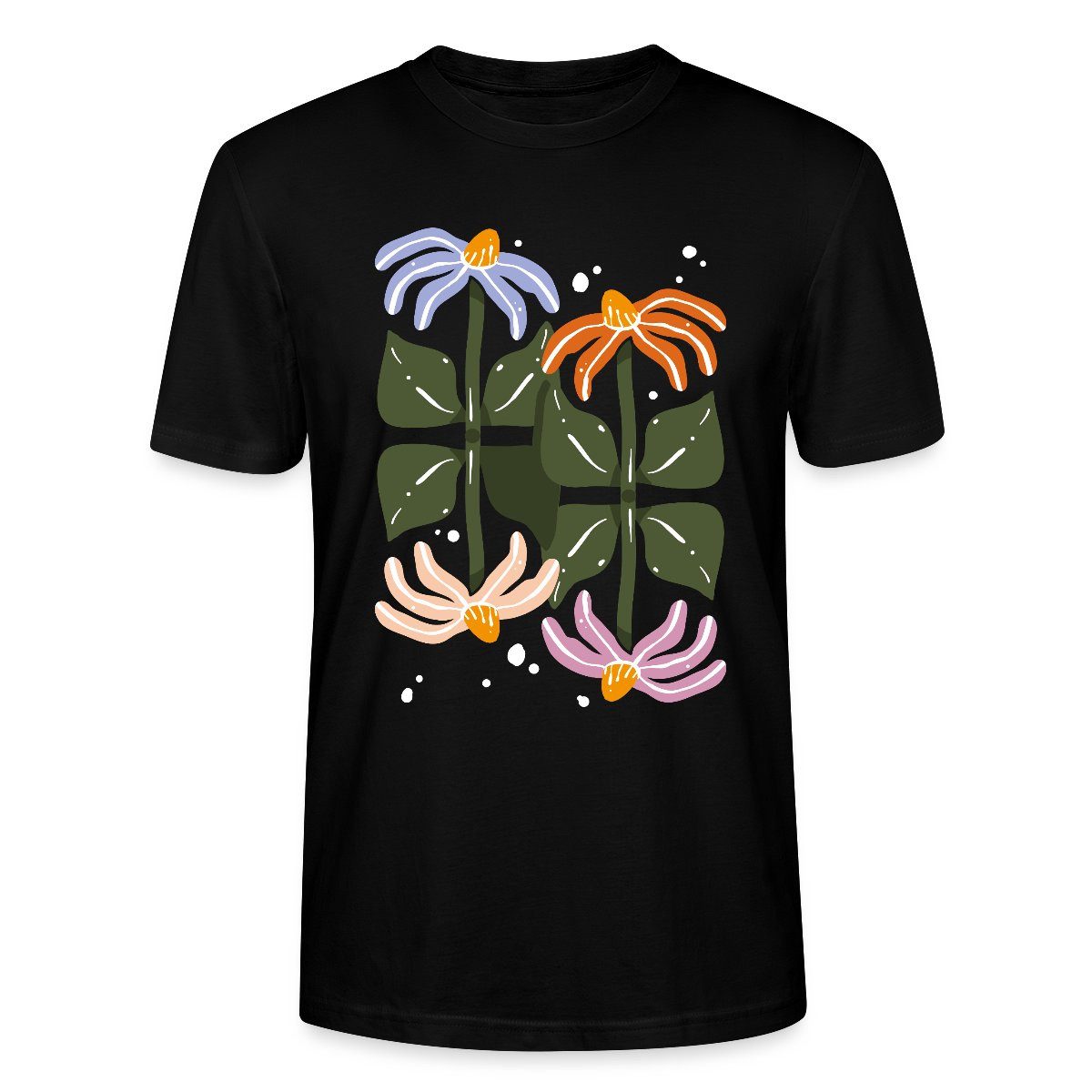 Spreadshirt T-Shirt Bunte Retro Blumen Illustration Im Boho Stil Unisex Bio T-Shirt (1-tlg)