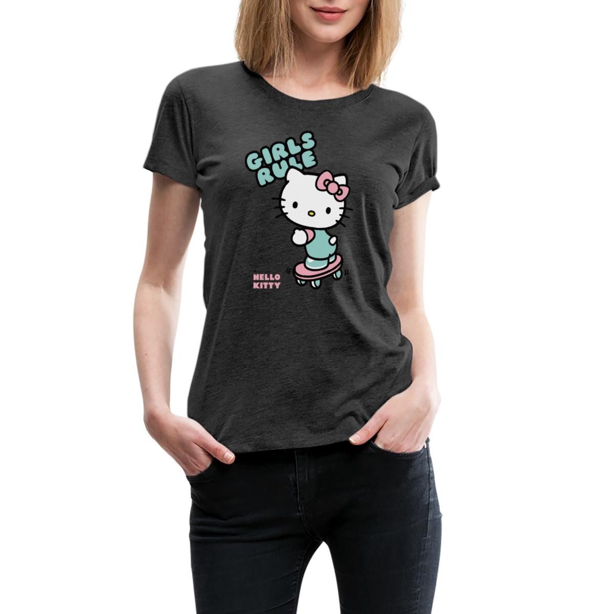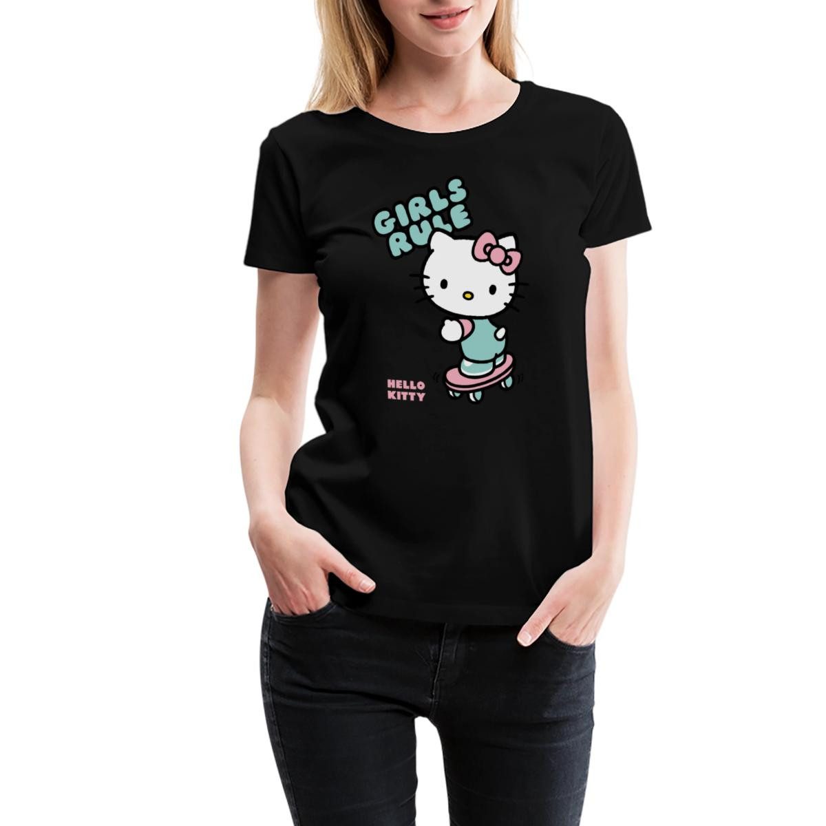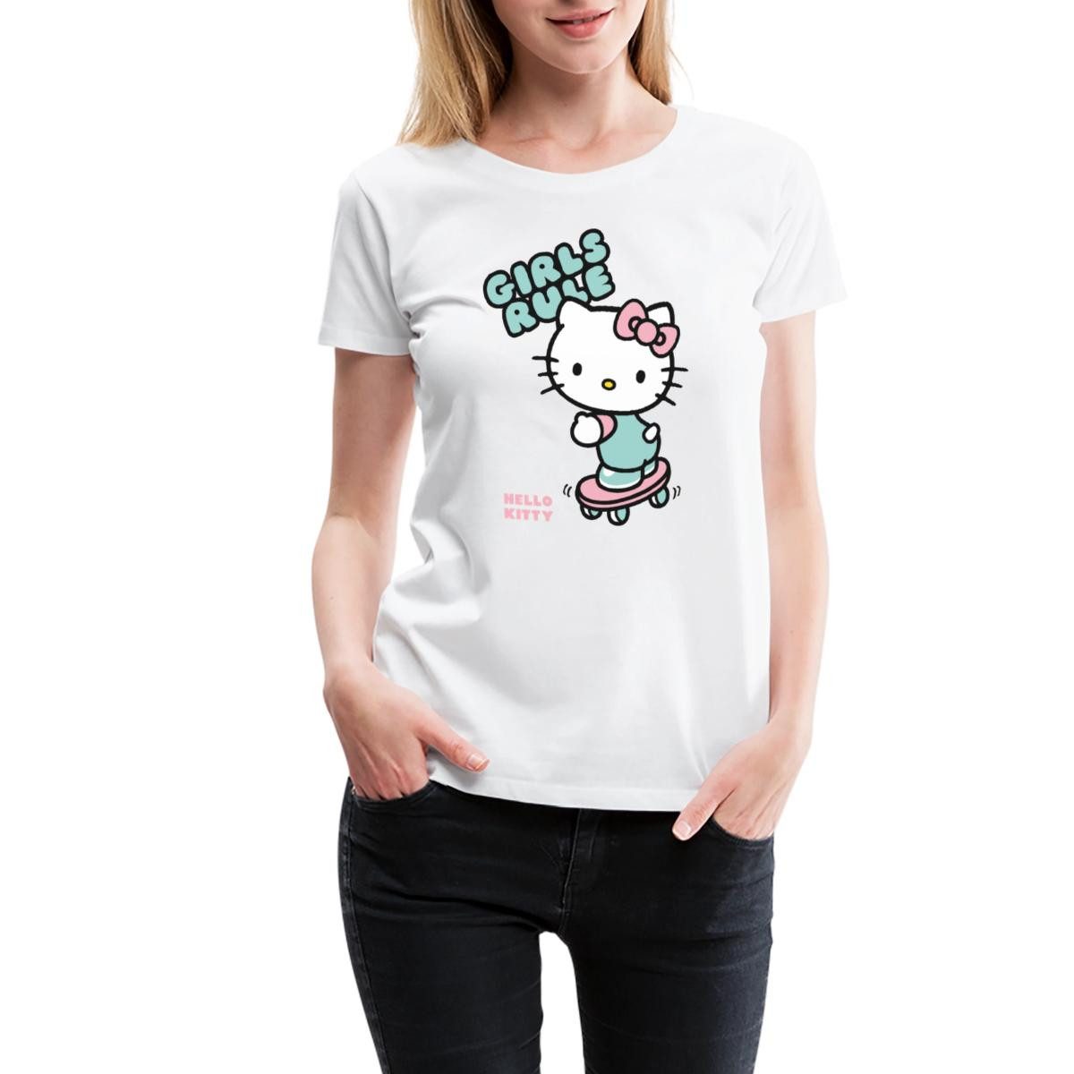 Spreadshirt T-Shirt Hello Kitty Auf Skateboard Girls Rule Frauen Premium T-Shirt (1-tlg)