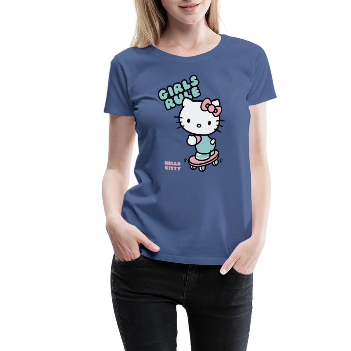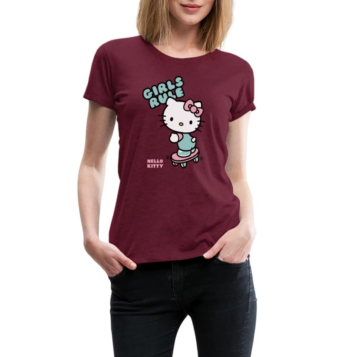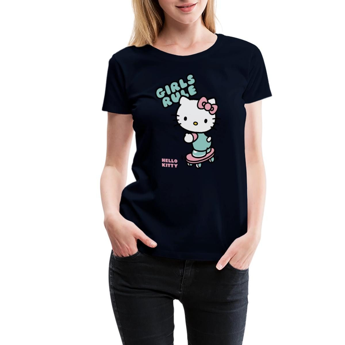 Spreadshirt T-Shirt Hello Kitty Auf Skateboard Girls Rule Frauen Premium T-Shirt (1-tlg)