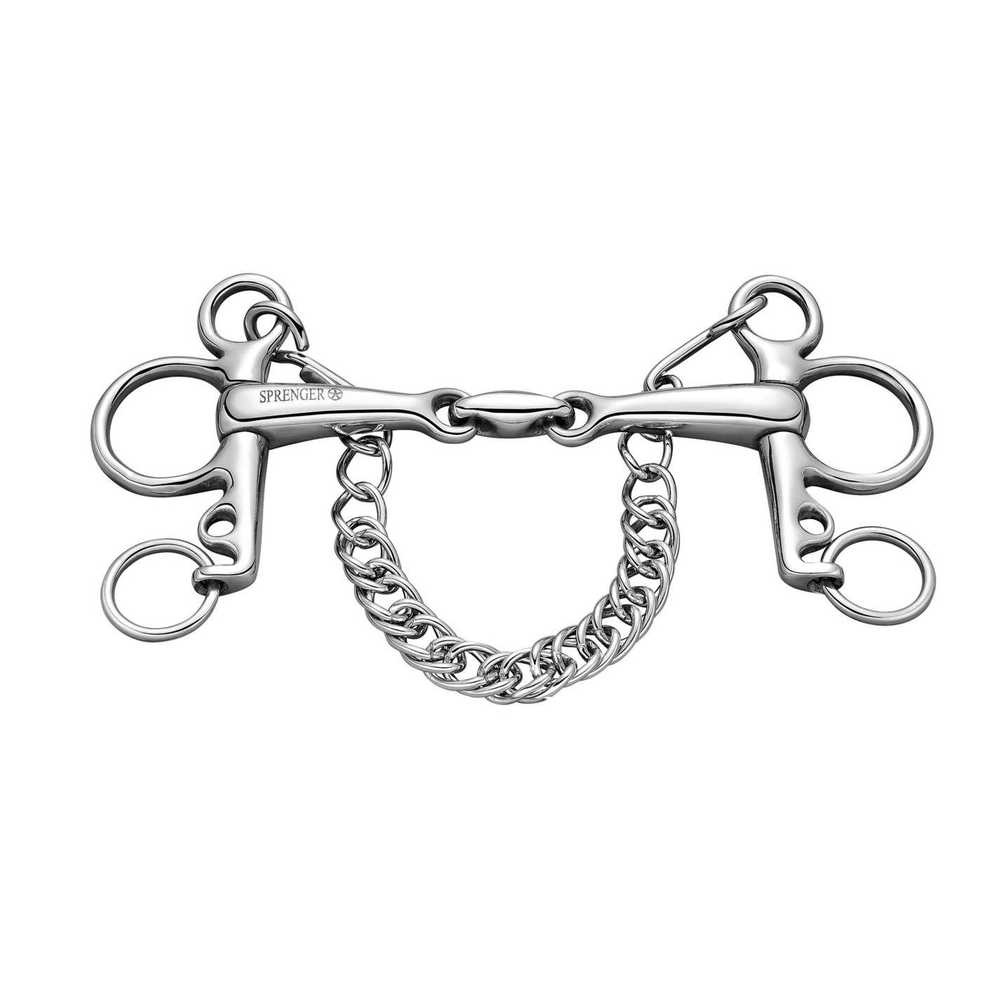Pelhams sind Gebisse mit zusätzlicher Hebelwirkung auf das Genick. Über die Kinnkette wird außerdem Druck auf den Unterkiefer ausgeübt. Sie stellen in gewisser Weise eine Verschmelzung von Kandare und Unterlegtrense dar. Pelhams können wahlweise mit einem oder zwei Zügelpaaren geritten werden, wodurch sich mehrere Verschnallmöglichkeiten ergeben. Sind die Zügel im Trensenring eingehakt, wirkt das Pelham nur auf Zug auf die Zunge und die unteren Laden. Wenn Pferde dazu neigen, den Kopf hochzureißen, ist es sinnvoll, einen Zügel im Ring am Unterbaum ein zuschnallen, weil dann Druck auf das Genick ausgeübt wird. Diesem Druck versucht das Pferd auszuweichen, indem es den Kopf senkt. Damit das Pferd nicht zu tief kommt soll bei maximal 45° (Unterbaum zur Maulspalte) die Kinnkette wirken. Am sinnvollsten ist es mit zwei Zügelpaaren zu reiten, weil man dann den Druck auf das Genick ausüben kann wenn man ihn braucht. Häufig kommt beim Pelham auch das Pelhamriemchen zum Einsatz. Dieser Riemen wird im oberen und unteren Zügelring verschnallt, darin wird dann ein Zügelpaar befestigt.