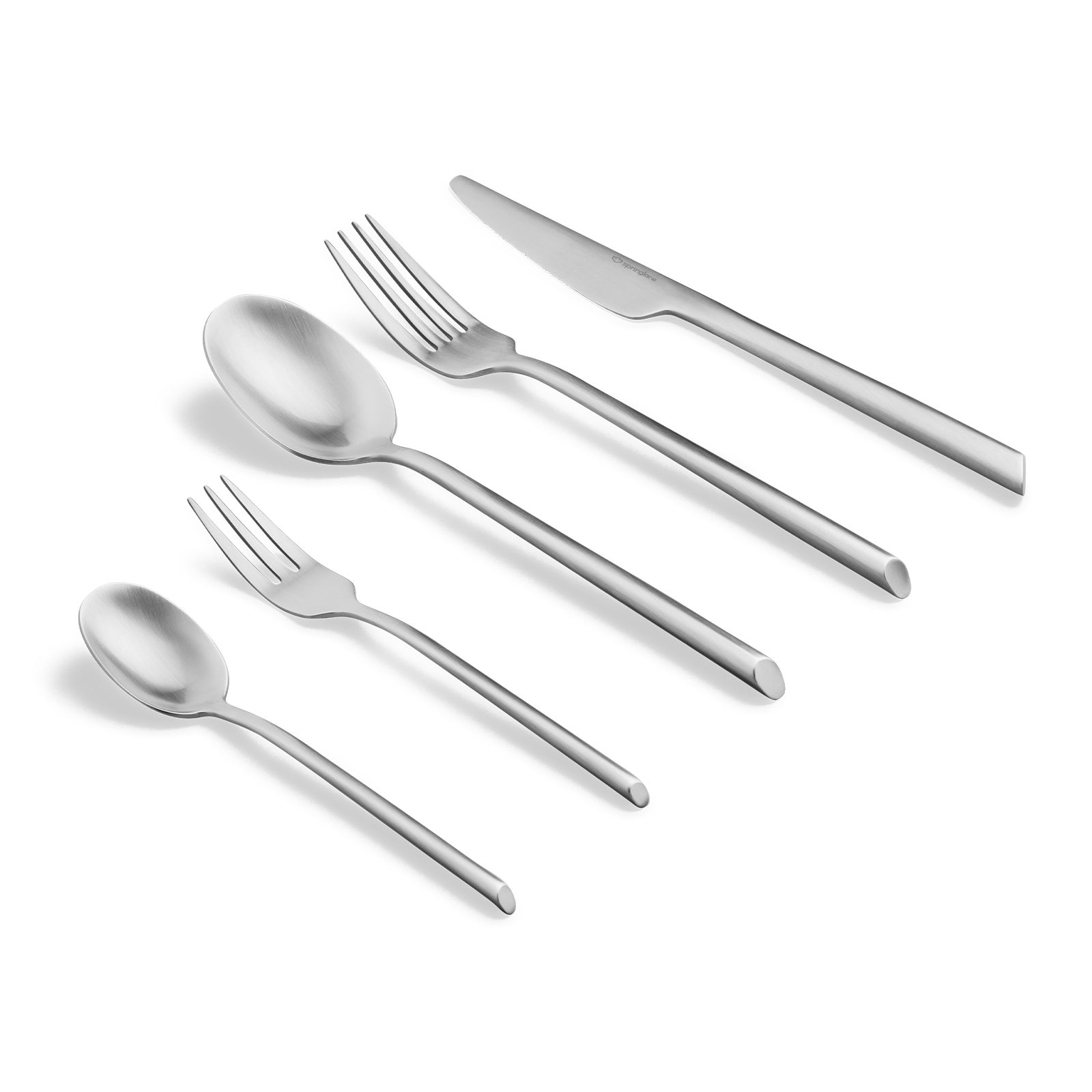 Klare und moderne Formen zeichnen das Besteck-Set aus. Das seidenmatte Finish und die in Handarbeit abgeschrägten Griffenden setzen zudem optische Highlights. Der schlanke Schaft jedes Besteckstücks liegt angenehm in der Hand und verleiht jeder Tafel einen stilvollen Look.