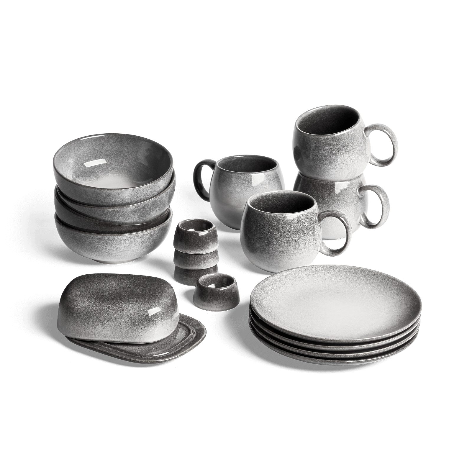 Bringe zeitlose Eleganz auf deinen Frühstückstisch mit dem Eierbecher-Set aus der Misty Cliff Serie. Hergestellt aus hochwertigem Steingut, vereinen diese Eierbecher eine robuste Verarbeitung mit einem einzigartigen Design. Jeder Becher ist ein handgefertigtes Unikat mit einem faszinierenden grauen Farbverlauf – perfekt für Liebhaber skandinavischer Ästhetik.