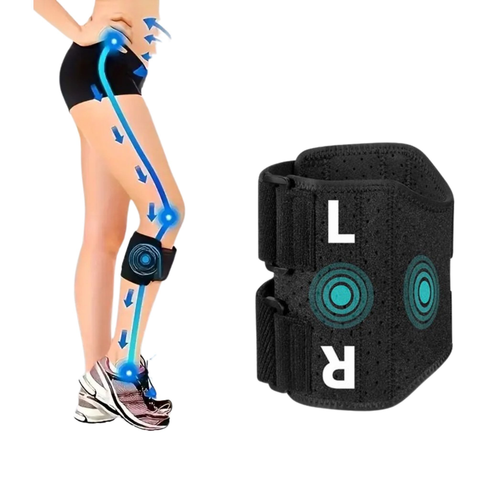 Schmerzlinderung bei Ischias & Rückenschmerzen Akupressur-Kniebandage lindert Ischiasnervschmerzen, Rückenschmerzen & Gelenkschmerzen durch gezielten Druckpunkt.