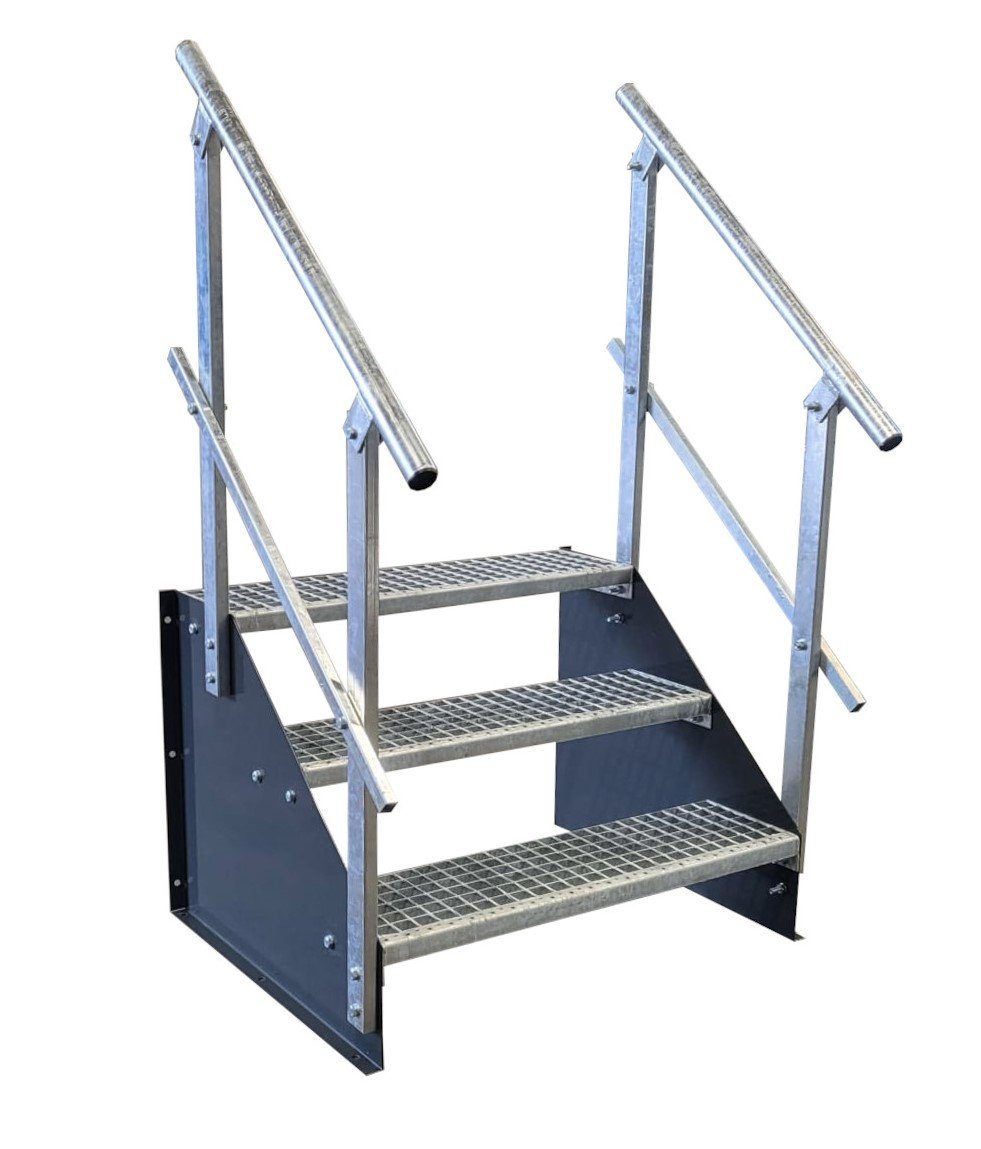 3 Stufen Standtreppe Stahltreppe freistehend Breite 110cm Höhe 63cm anthrazit beidseitiges Geländer