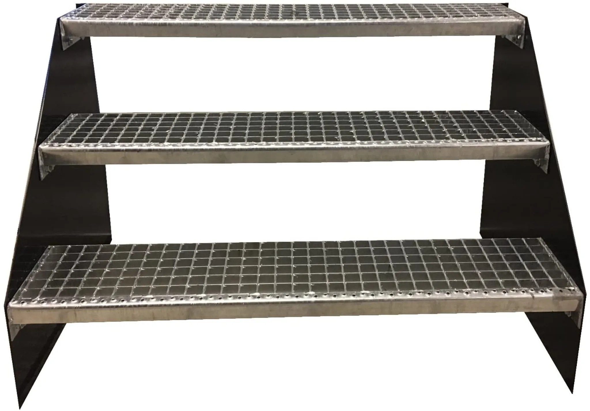-Standtreppe verzinkt / 3 Stufen / Breite 100 cm / Geschosshöhe 63cm / Tiefe: 72cm -Inklusive 2 Treppenwangen Anthrazitgrau RAL 7016 -Mit jeder Stufe kann eine Geschosshöhe von 21cm überbrückt werden.