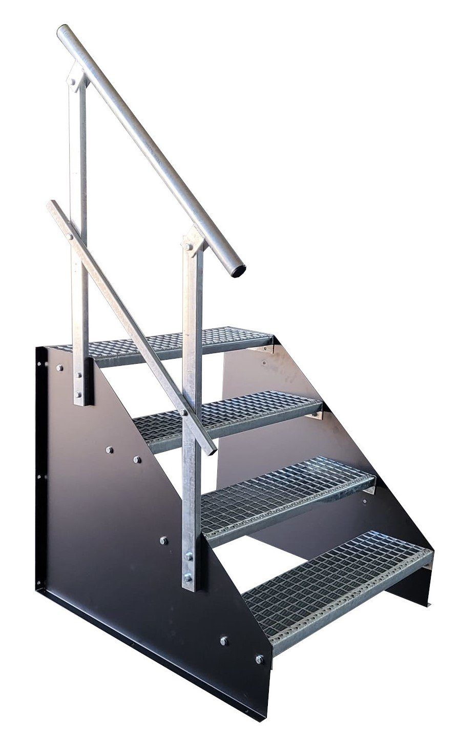 4 Stufen Standtreppe Stahltreppe freistehend Breite 120 cm Höhe 84cm schwarz einseitiges Geländer
