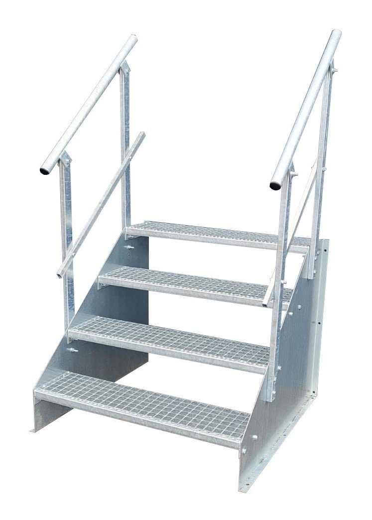 4 Stufen Standtreppe Stahltreppe freistehend Breite 150cm Höhe 84cm verzinkt beidseitiges Geländer