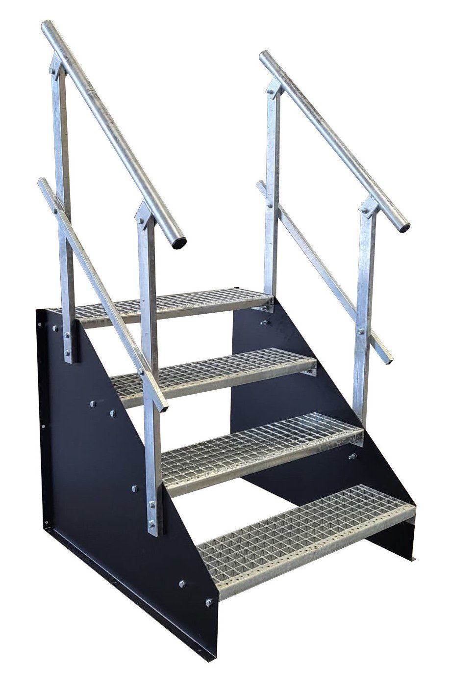 4 Stufen Standtreppe Stahltreppe freistehend Breite 60cm Höhe 84cm schwarz beidseitiges Geländer