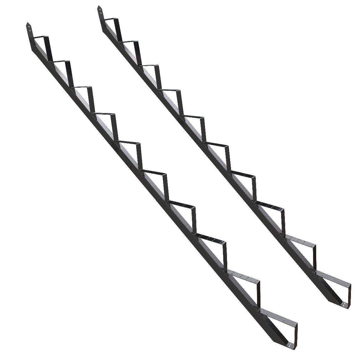 Die Treppenrahmen / Treppenholm sind ideal für den Einsatz im Innen und Außenbereich. Die Trittstufen können individuell ausgesucht und angebracht werden. Für die stabile Anbringung der Stufen sind genug Bohrungen vorhanden.